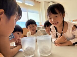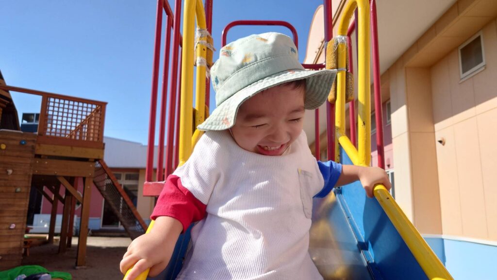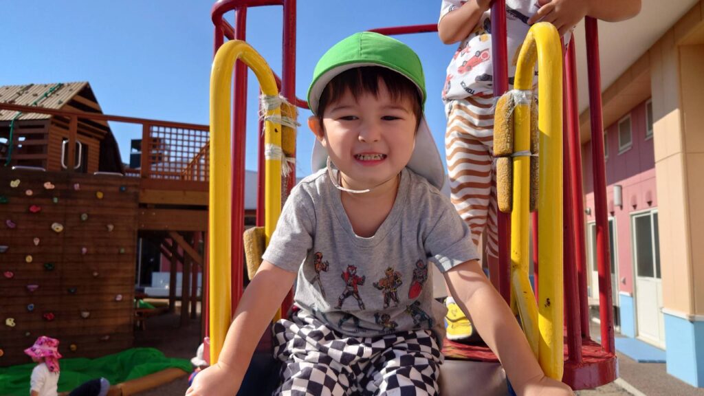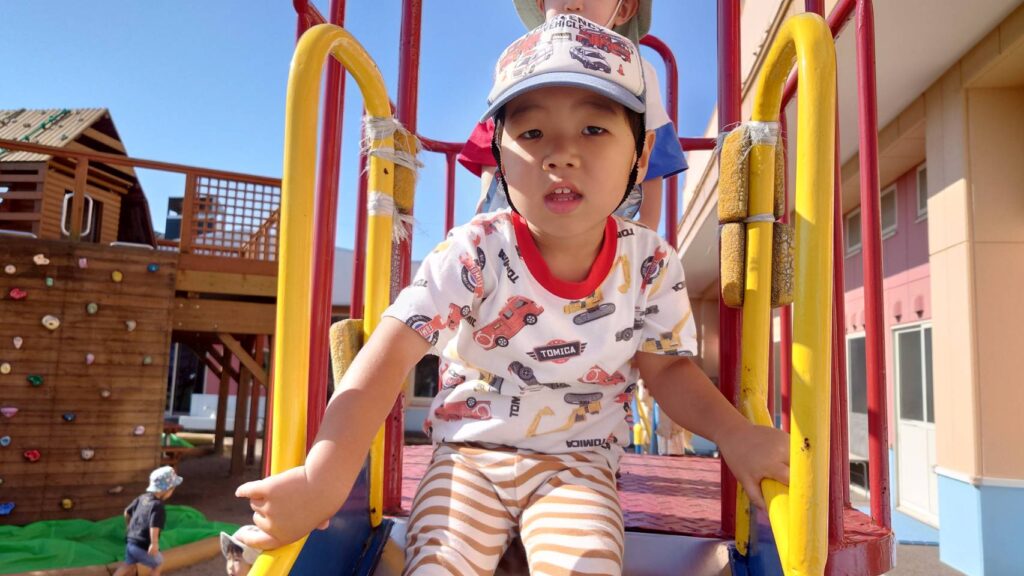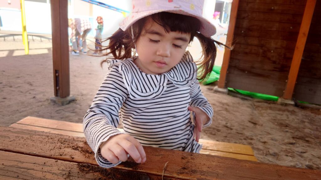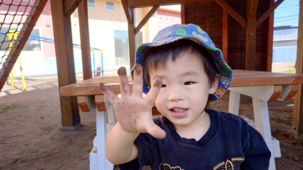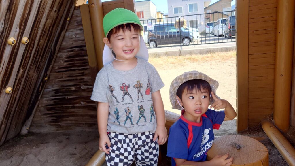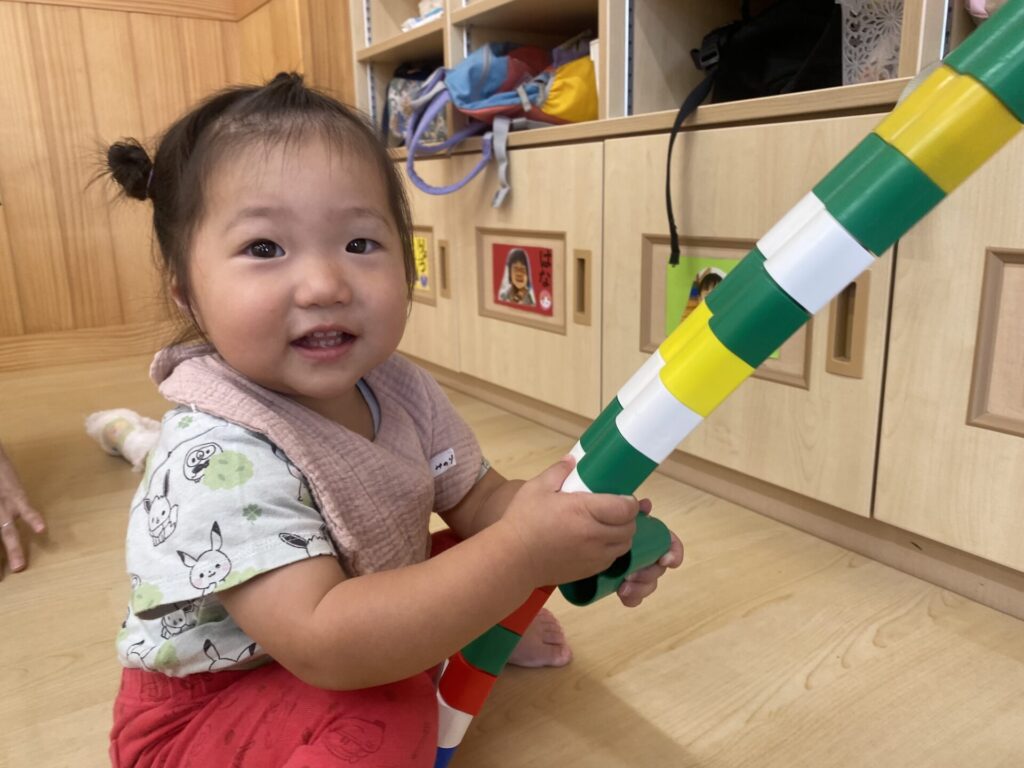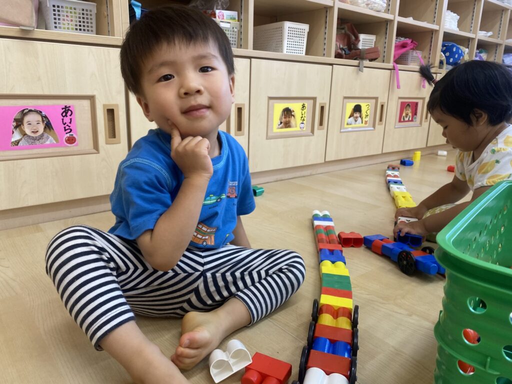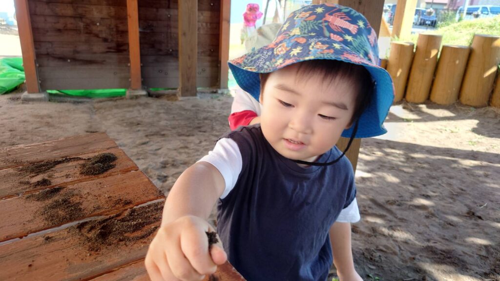 チョコさんは園庭で遊びました!!子どもたちも滑り台や虫探しなど時間いっぱい楽しんで遊びました😄お部屋では折り紙でジュースのコップとポテトの入れ物を作りました🥤🍟子どもたちも慎重に折り紙の角を合わせて頑張って折っていました!!