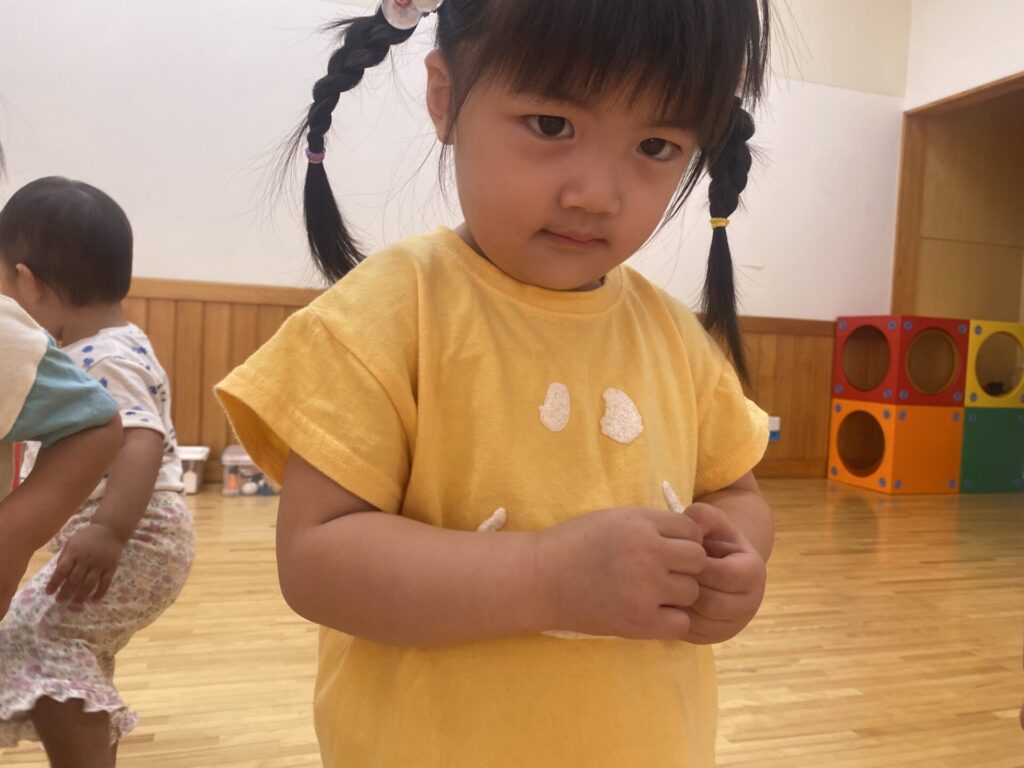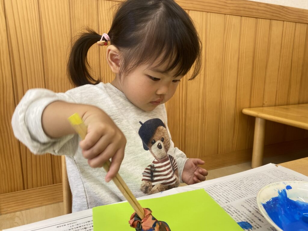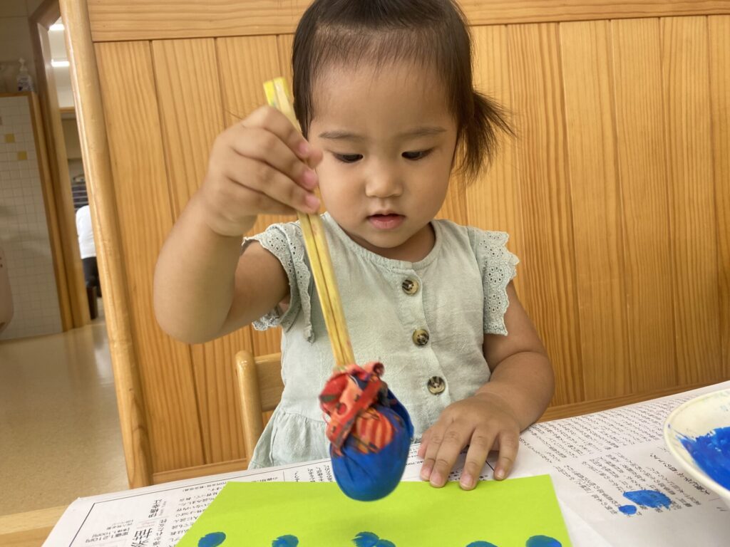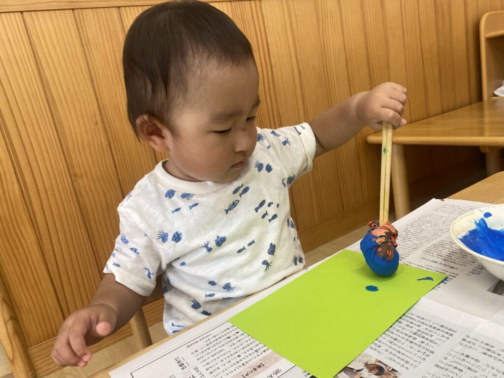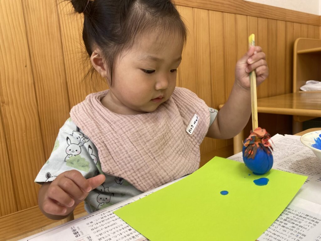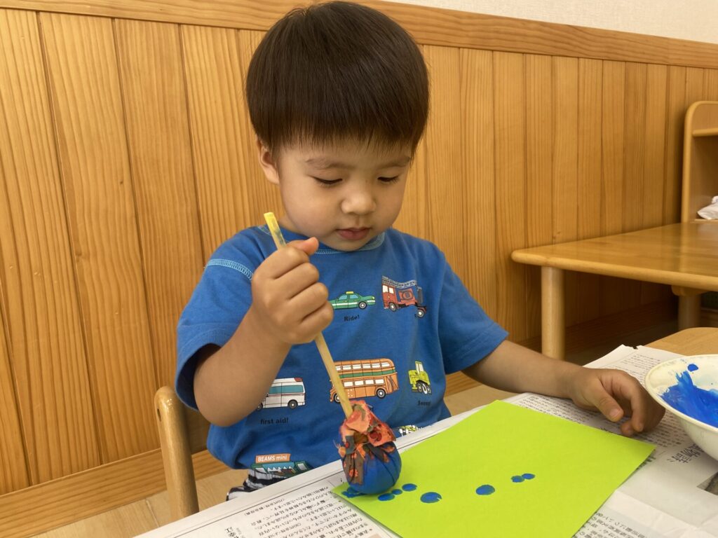 くりーむちゃんはホールでダンスをしたり、好きな遊びをしたりと思いきり体を動かして楽しみました🥰お部屋では製作をしました🌟子どもたちも真剣にタンポンで模様を付けて楽しんでいましたよ🎶