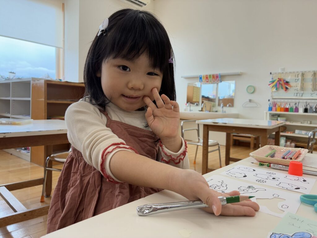 青バッチさんは「ちょっと難しいことしてみたい」と自ら難しい事に取り組もうと頑張っています!1人で難しい時にはお友達に声を掛け最後まで頑張っていました🌟さすが青バッチさんですね!!