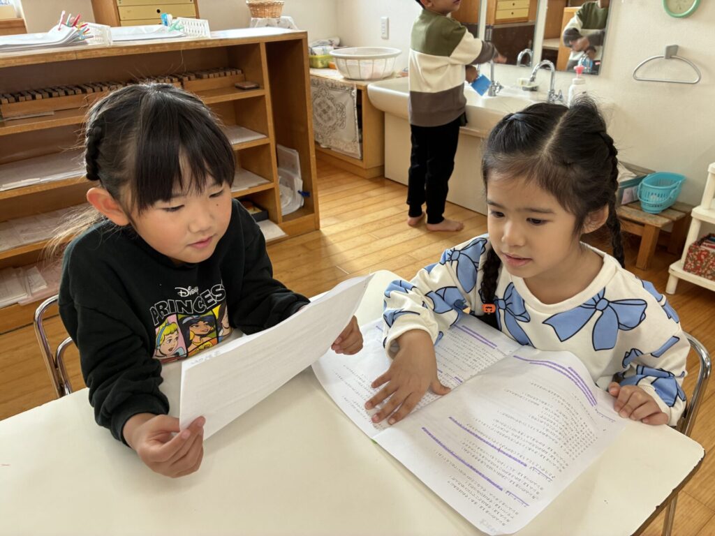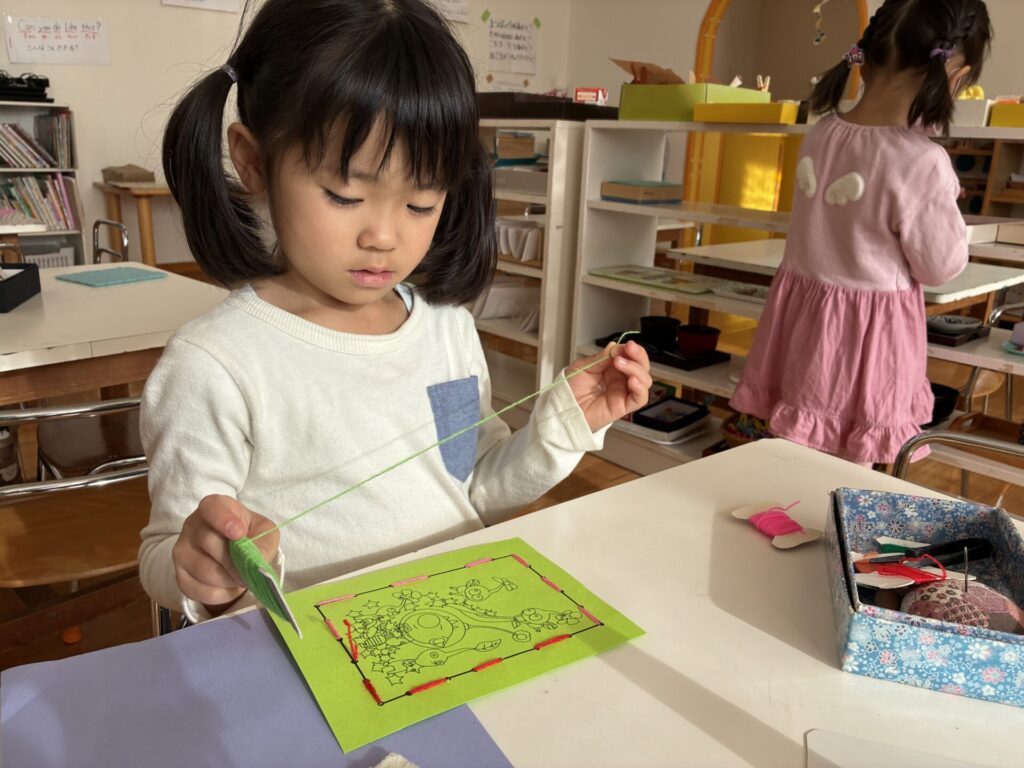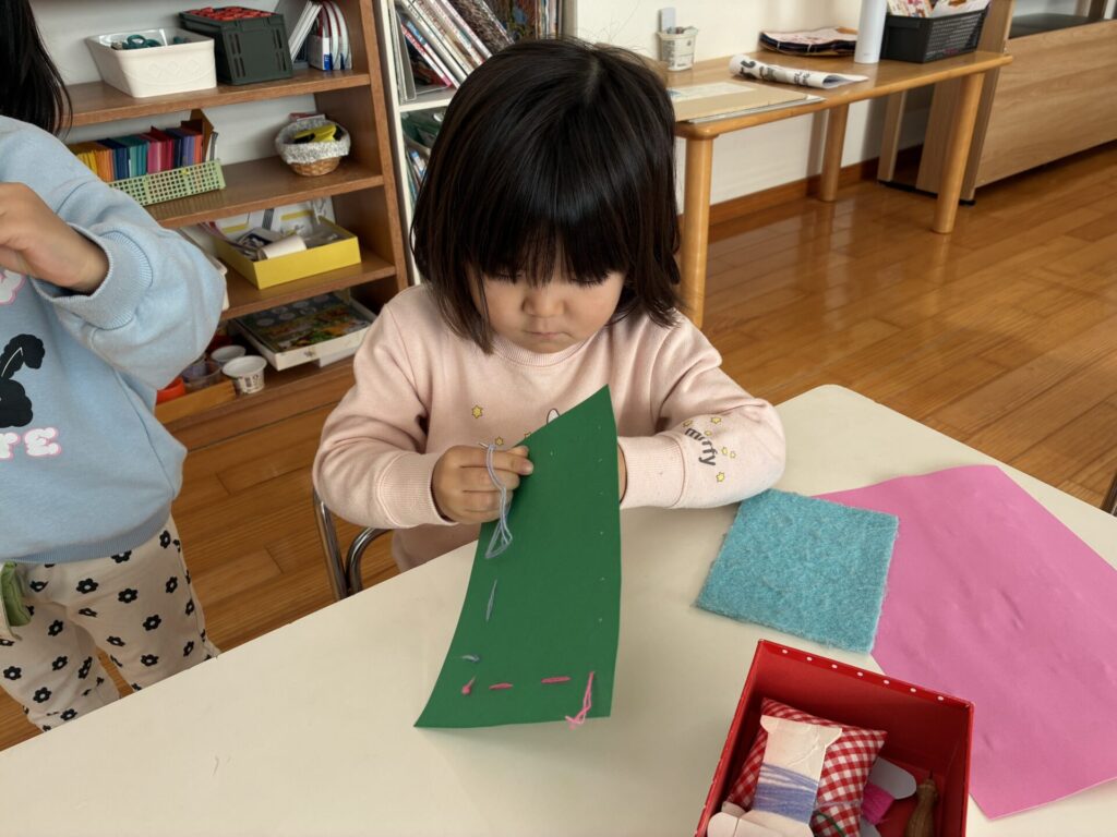 赤バッチさんでは、縫い取りがブームで、色々な色の糸を使っって綺麗に仕上げています💕黄色バッチさんは少し難しいお仕事にも頑張って挑戦しています。青バッチさんは、クリスマス会の劇のセリフを読み合わせしながら笑顔で頑張っていましたよ。とてもパワフルなたんぽぽ組のみんなです🥰