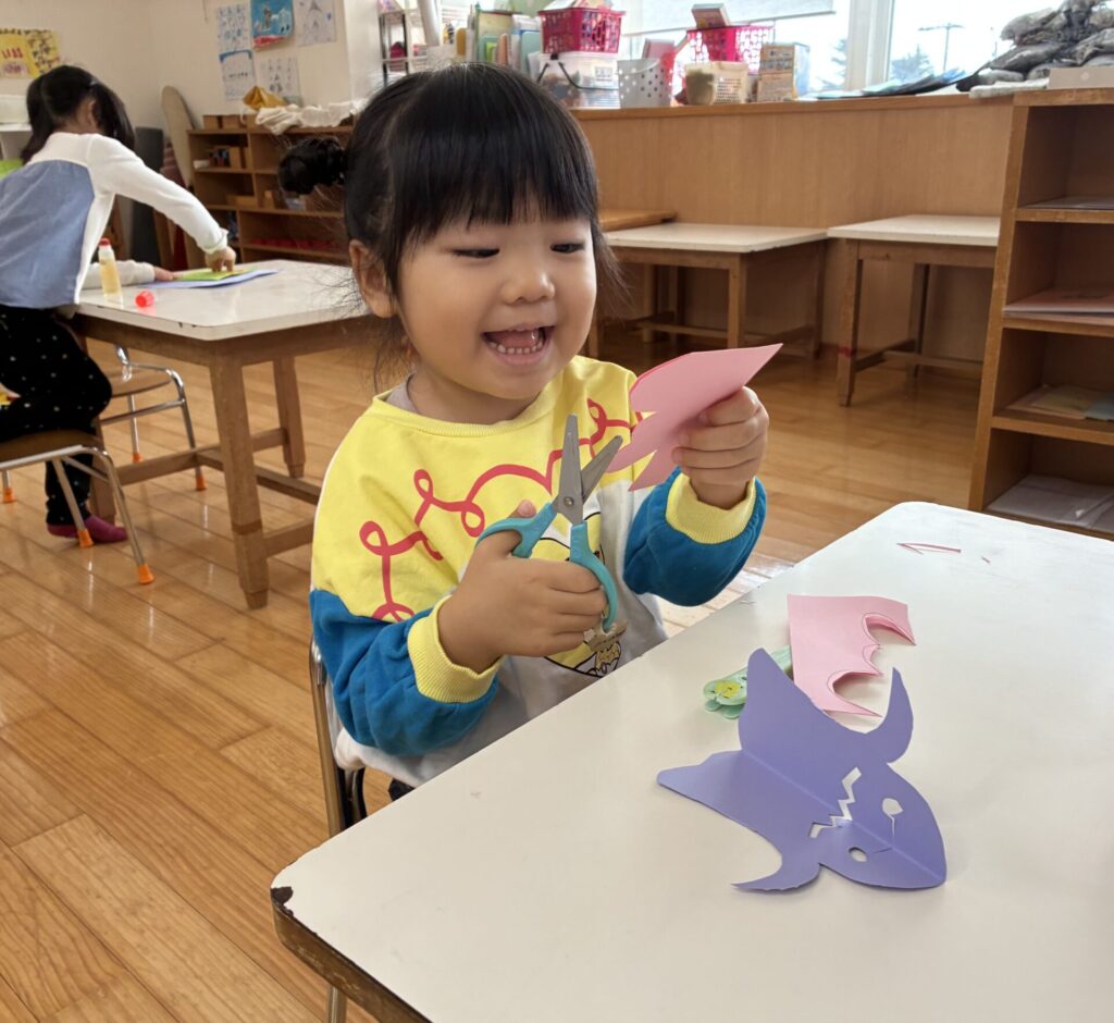 今週のお部屋では、ハロウィンの製作や、クリスマス会に向けての製作を頑張って作っていた子が多かったです😊「こうしたい!」「こうしたらどうかな?」と自分で考え教えてくれていましたよ😄出来上がった作品を、違うクラスのみんなにも見せたいと、ひまわり、ちゅうりっぷのお部屋にお邪魔しに行くお友達も🥰満面の笑みで帰って来るかわいい姿も見られます💕