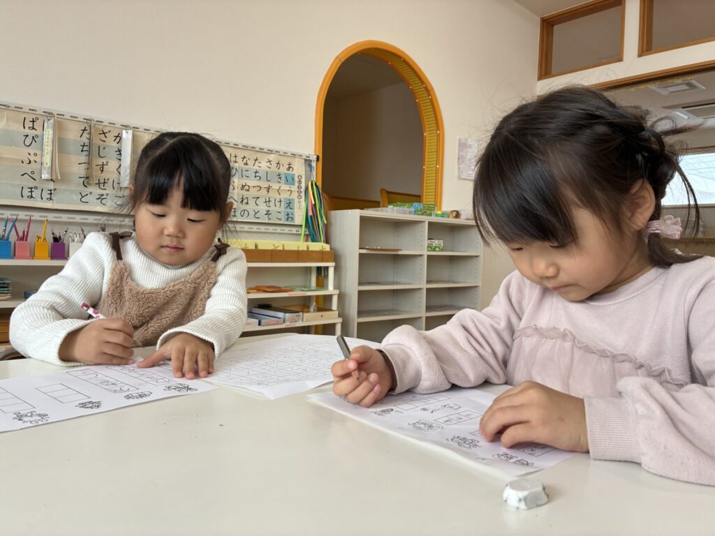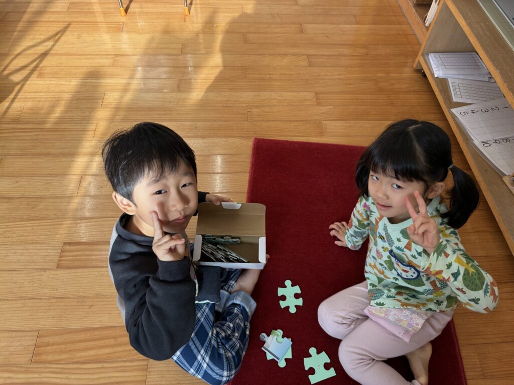 今週はついに雪が降り始めましたね⛄子ども達は、窓の外を見て「雪だ~!!」「積もるかな~!」とワクワクしている様子でした!