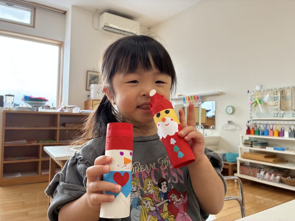トイレットペーパーのしんや、箱を上手に使って作っていて可愛らしい作品が増えてきましたよ✨クリスマス会で飾りますので、お楽しみに!