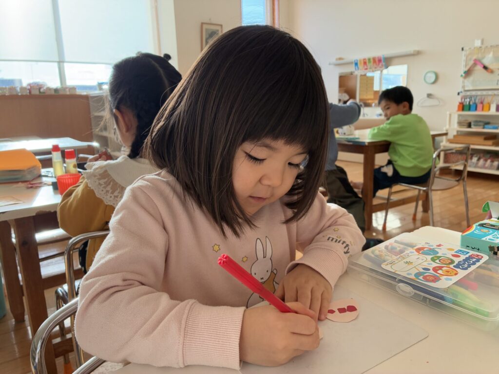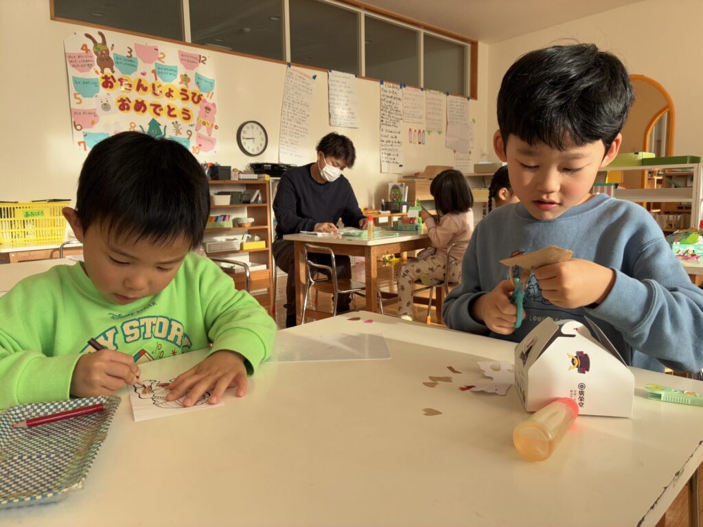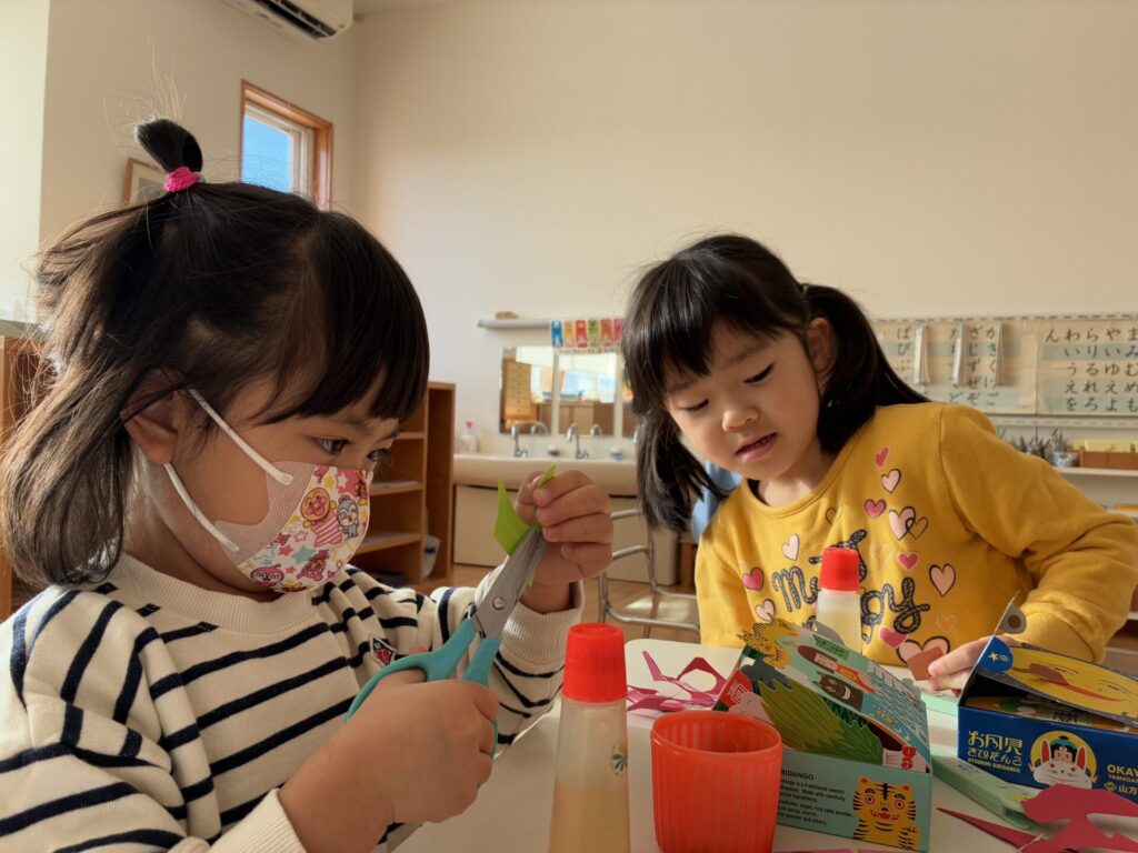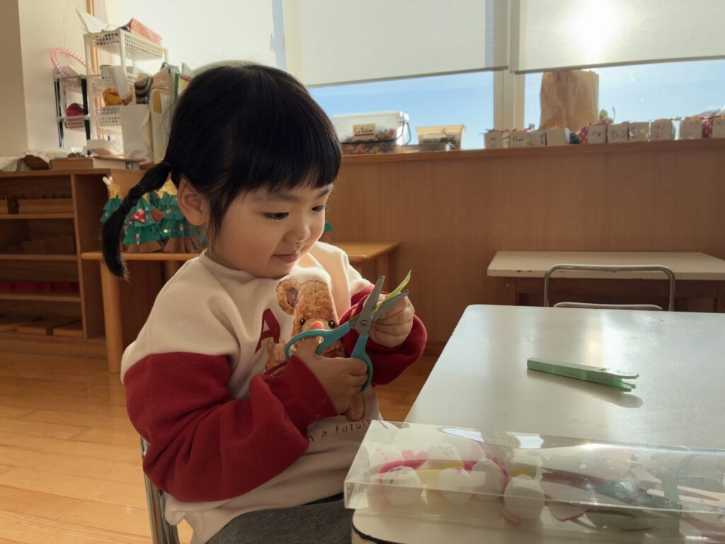 4つのお約束事を意識して過ごしている子ども達は、お仕事中も頑張っています!紙の切れ端を見つけると、「あ!これはまだ使えるから、何かに使おうかな?」と考える姿も🥰