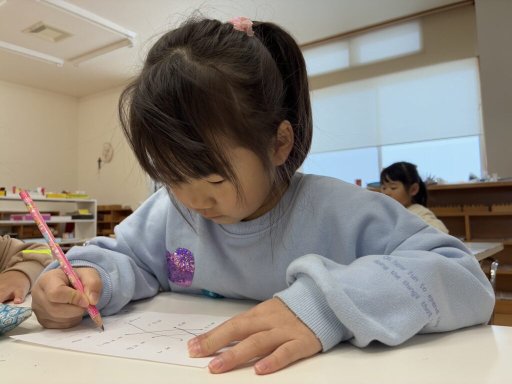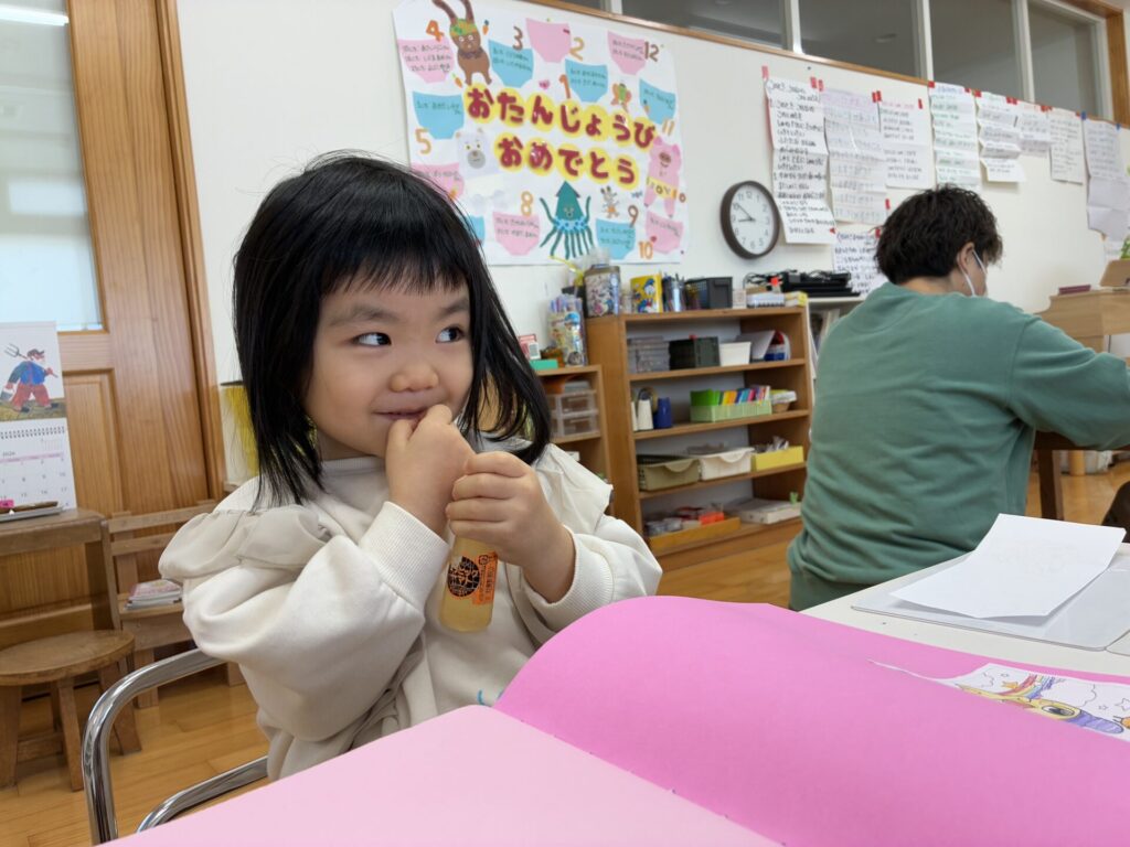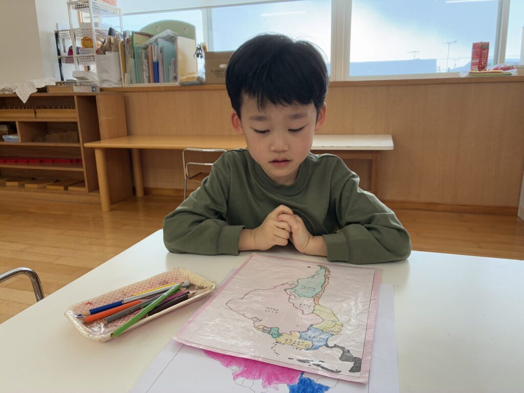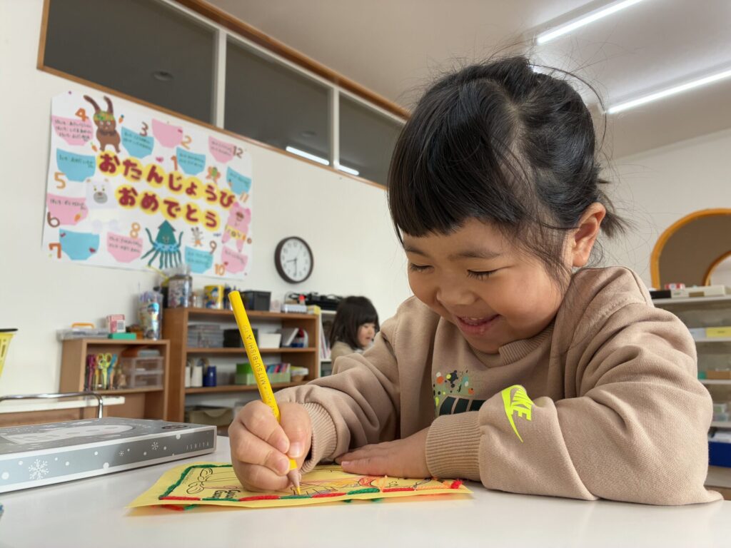 棚には新しいプリントや、塗り絵が補充されていて「わ~~!これやりたい!」と自分たちで発見して嬉しそうに取り組んでいます!