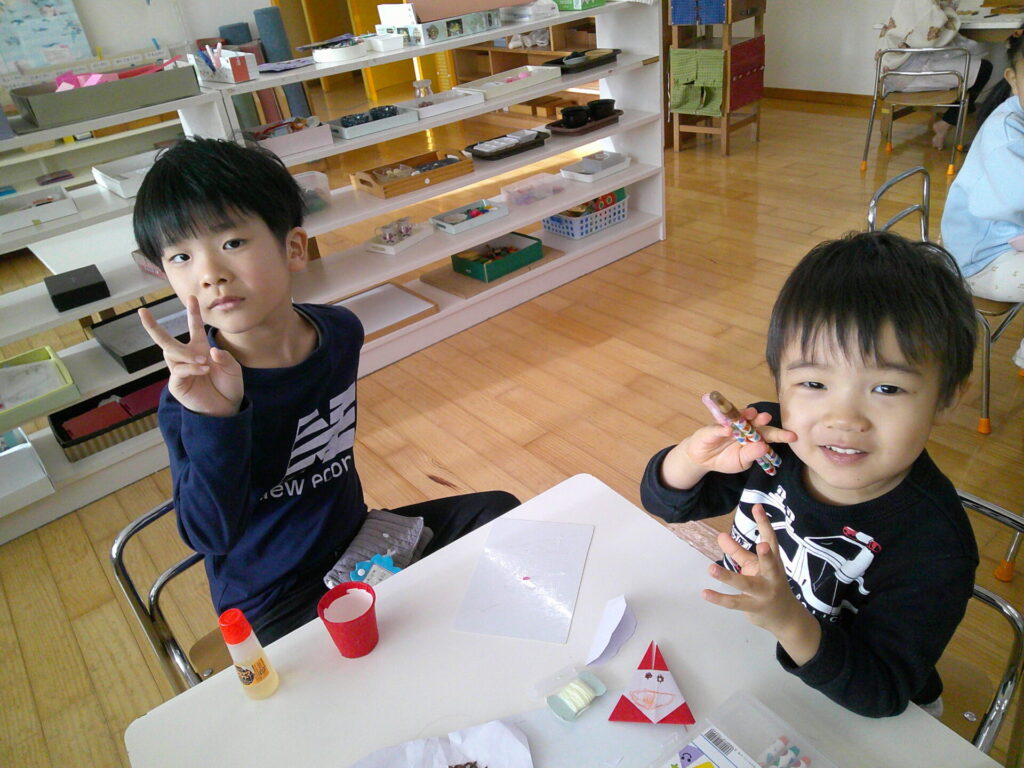 クリスマス会のプレゼントが少しずつ完成してきてる子ども達!完成した作品を見たなら「早く飾りたいなぁ!」「これ僕が作ったんだよ!」と誇らしげになったり、うっとりと眺めている子ども達です💕