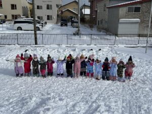とうとう雪が積もりましたね!一夜明けたら雪の世界!子ども達は朝から「雪だるま作ってきた!」「雪かきのお手伝いをしたよ!」「先生!雪が沢山降ったね!」とウキウキワクワクしていました😊