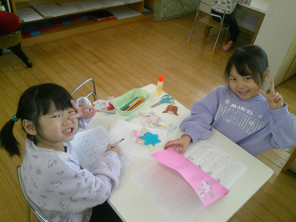 塗り絵やぬいとりなど新しいものがあり、「あ!サンリオの新しい奴がある!」「ラブブがこんなところに!」と楽しみながらお仕事に取り組んでくれていますよ😊