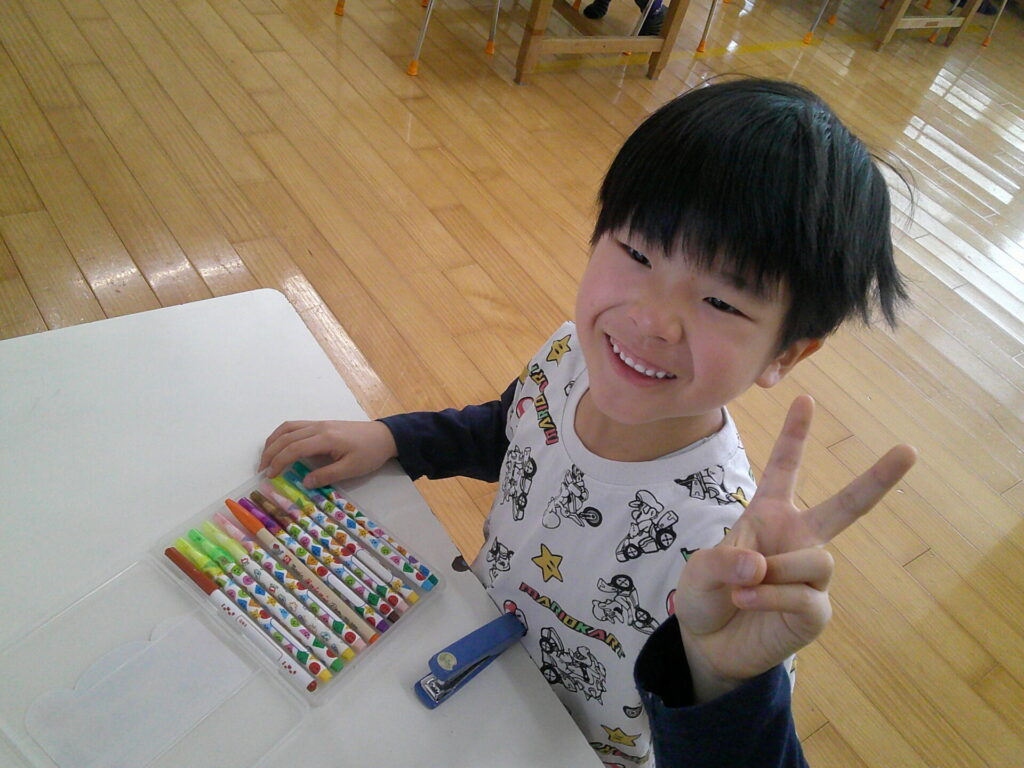 今はお引越しするお友達へプレゼントを作っているちゅうりっぷ組さん。今回は5人ものお友達のお引越しが決まり、大忙しです!「え~、5人もお友達お引越ししちゃうのか…。」「”また遊ぼうね”っていうメッセージ書きたい。」また「○○君はちいかわが好きだったはず!」「○○ちゃんはプリンセスが大好きなんだよね💕」と相手の事を思ってプレゼント製作をしてくれているちゅうりっぷ組の子ども達です🥰