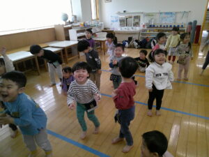 進級したちゅうりっぷ組の子ども達! 一つお兄さんお姉さんになって「新しいバッチになったんだ!」と少し誇らしげな子ども達でした💕その反面「なんで○○君はいないの?」と引っ越したお友達や小学校へ行ってしまったお友達の事を気にかける様子も見られましたよ✨