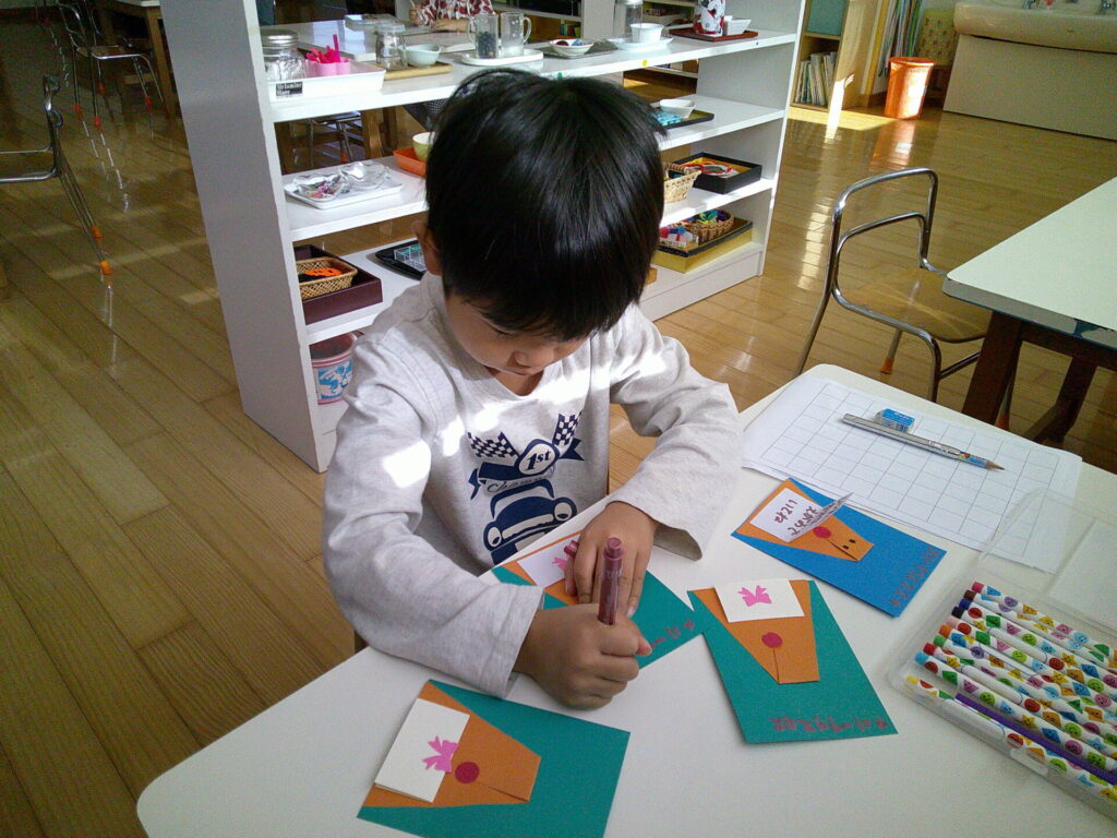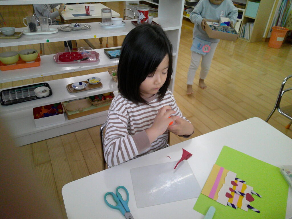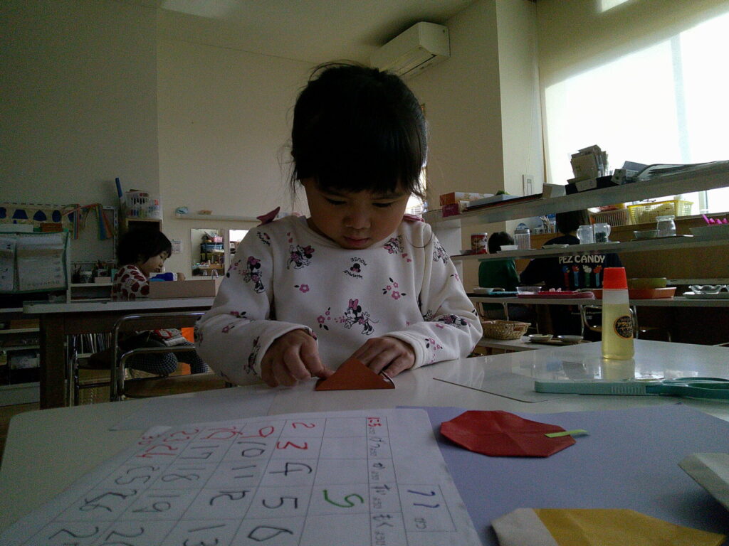 お仕事では、クロスステッチや折り紙をしてる子が多くいました。製作をしている子が多かったのですが、作品が完成すると「出来た!」と誇らしげに見せていましたよ☺️この調子で取り組んでいたいと思いますね。