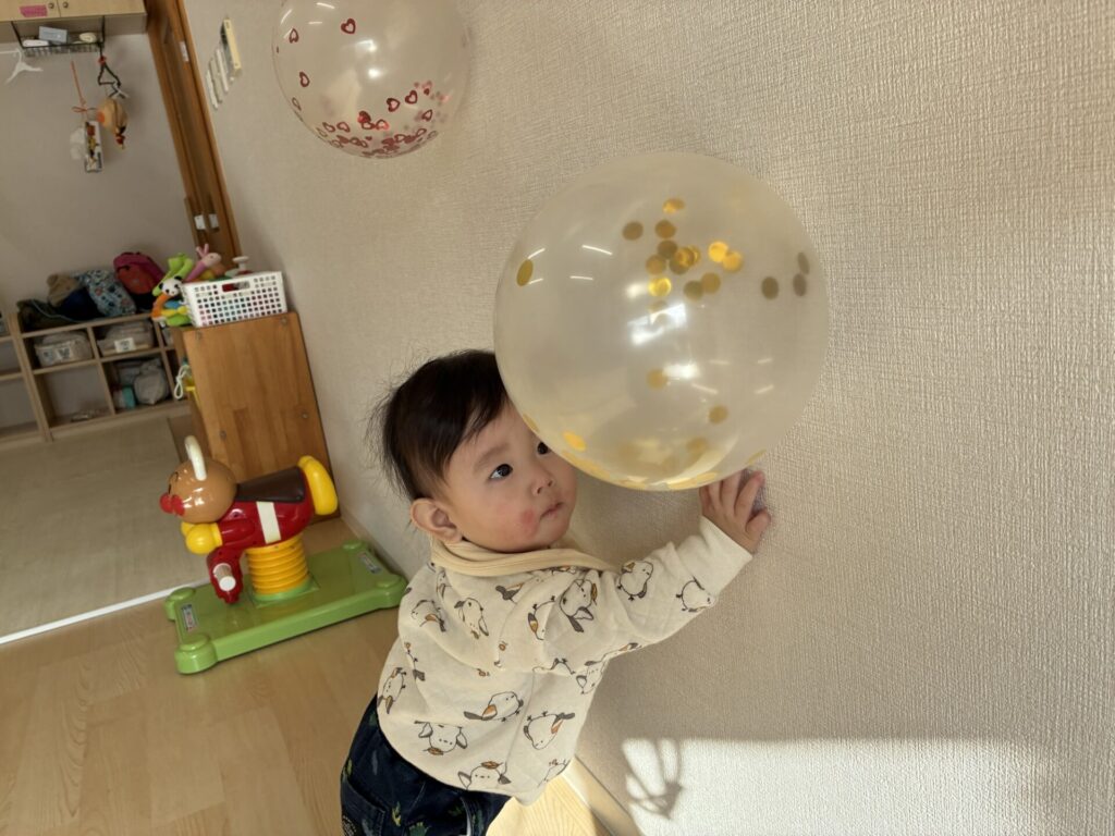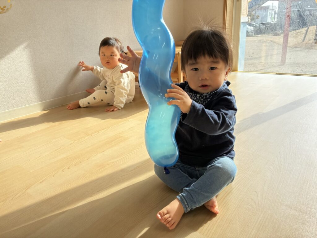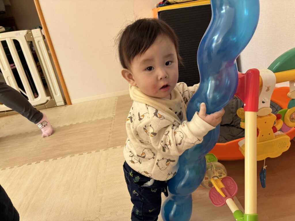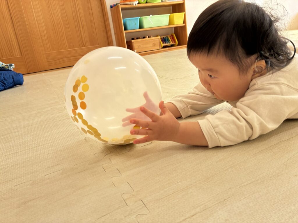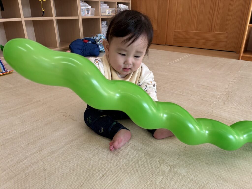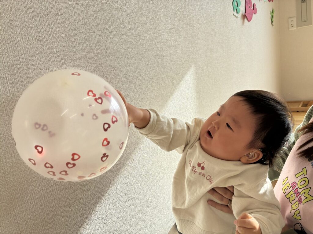 今日は、お部屋で風船遊び🎈をしました✨風船に興味津々なみんな!!力が強くなり「バンッ」と割れてしまいましたが、泣かずに次の風船まで一目散でした😆とっても逞しいひよこちゃんです🥰園では少しずつインフルエンザになるお友達も出て来ています。体調管理に気をつけて行きましょうね!