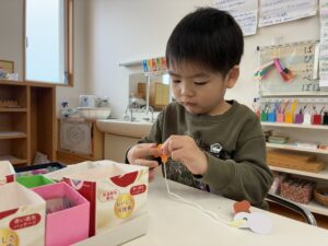 今日も元気いっぱいのひよこちゃんのお友だちです🥰ホールでは、チョコさんが作ってくれたブロックの椅子に座ったり、真似をして肋木を登ろうとする姿も…😊💕ふれあいタイムで青バッチさんに箱を引っ張ってもらったり、給食をお腹いっぱい食べたりと、今日も楽しく過ごしました☺️✨