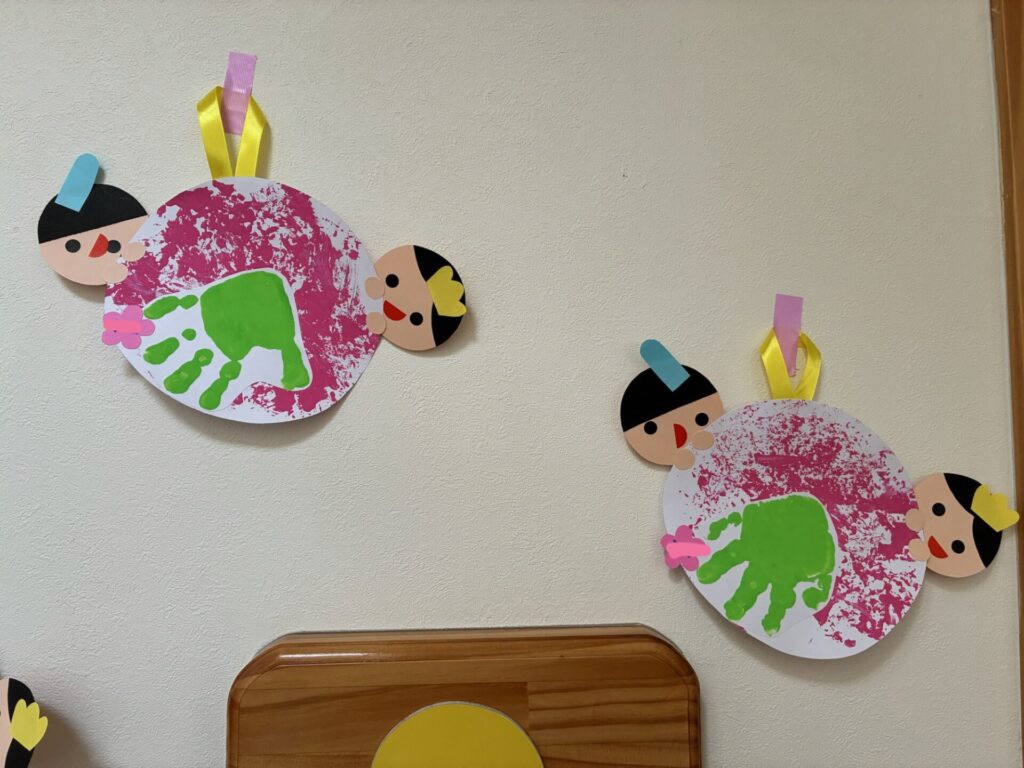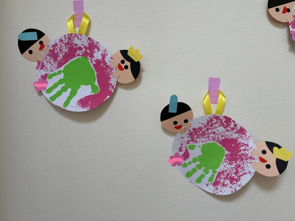 ひよこちゃんのおひなさまの製作です🎎(一枚目…左Tちゃん・右Oくん、二枚目…左Rくん・右Aちゃんです!)