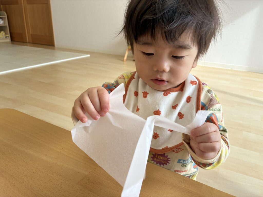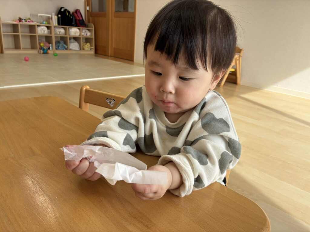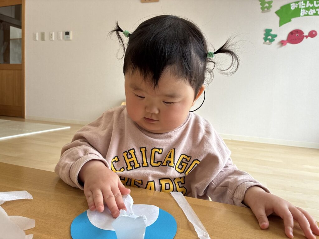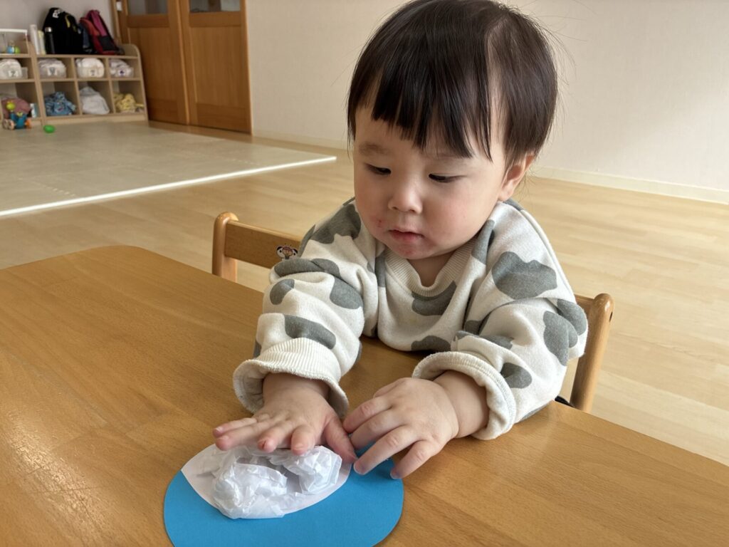 今日も元気いっぱいなひよこちゃん達です🥰🥰🥰製作では、先生がやっているのを見ながら真似して取り組んでいました✨ちぎる、丸めるがとっても上手になって来ましたよ😊たくさん遊んで、給食もモリモリ食べてます🍚🍴