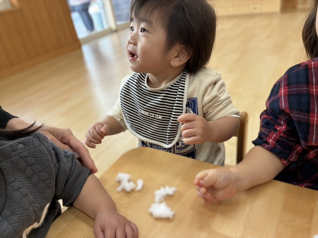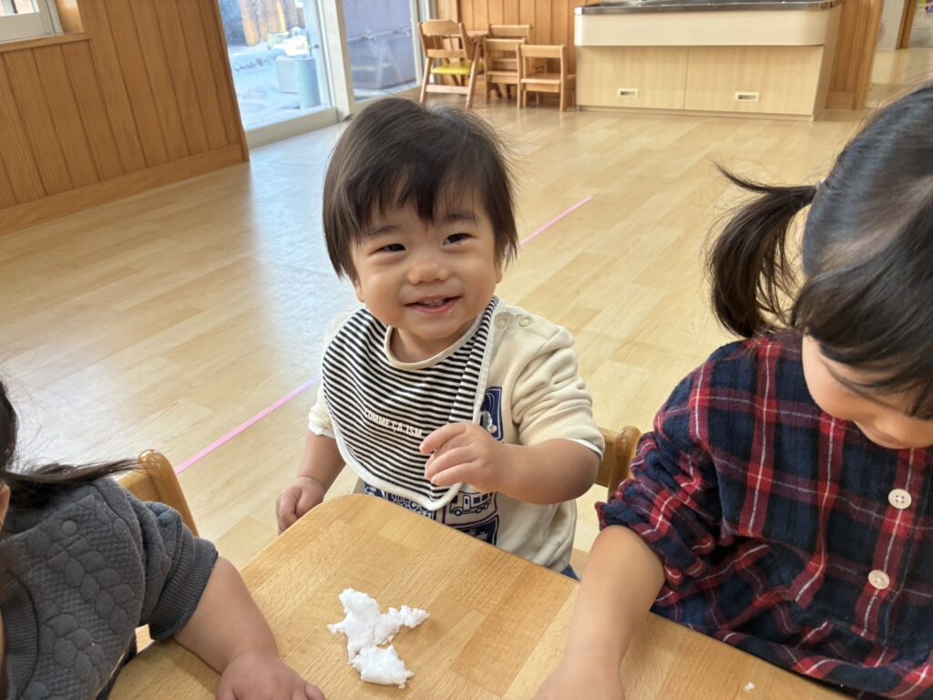 ひよこちゃん 投稿日 2025年12月9日 著者 由香利 カテゴリー 活動の様子 今日はクリームちゃんと過ごしました😆一緒に雪を触って大喜び⛄自分で雪をお顔に当てて、冷たい感触も楽しんでいましたよ!箱にぬいぐるみを入れて運び、最後に鳴らすタンバリンも楽しんでいました! 明日も待っています😊✨ この記事を書いた人 由香利 記事一覧