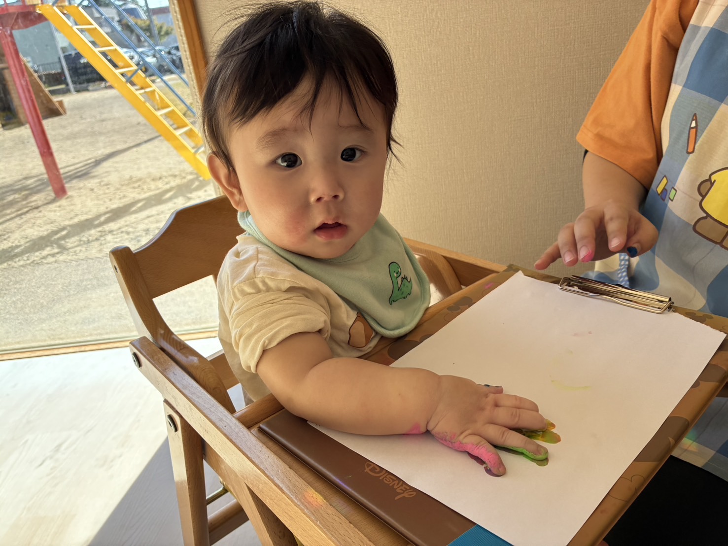今日はハロウィンの製作をしました🎃スポンジに絵の具をつけ、みんなの手のひらにくっつけると、不思議そうに見つめたり、出てきた手形を見て喜んでいましたよ🥰完成した作品は、10月25日はぴあで行われるハロウィンのイベントに飾りますので、ぜひ見て見てください😆🎶