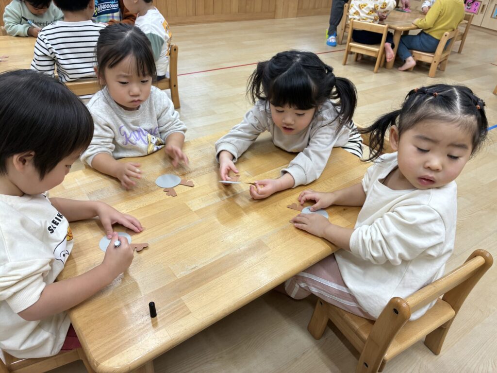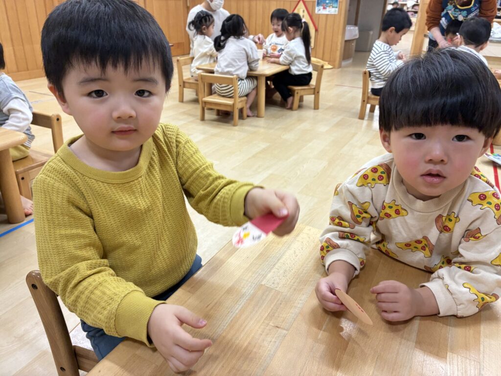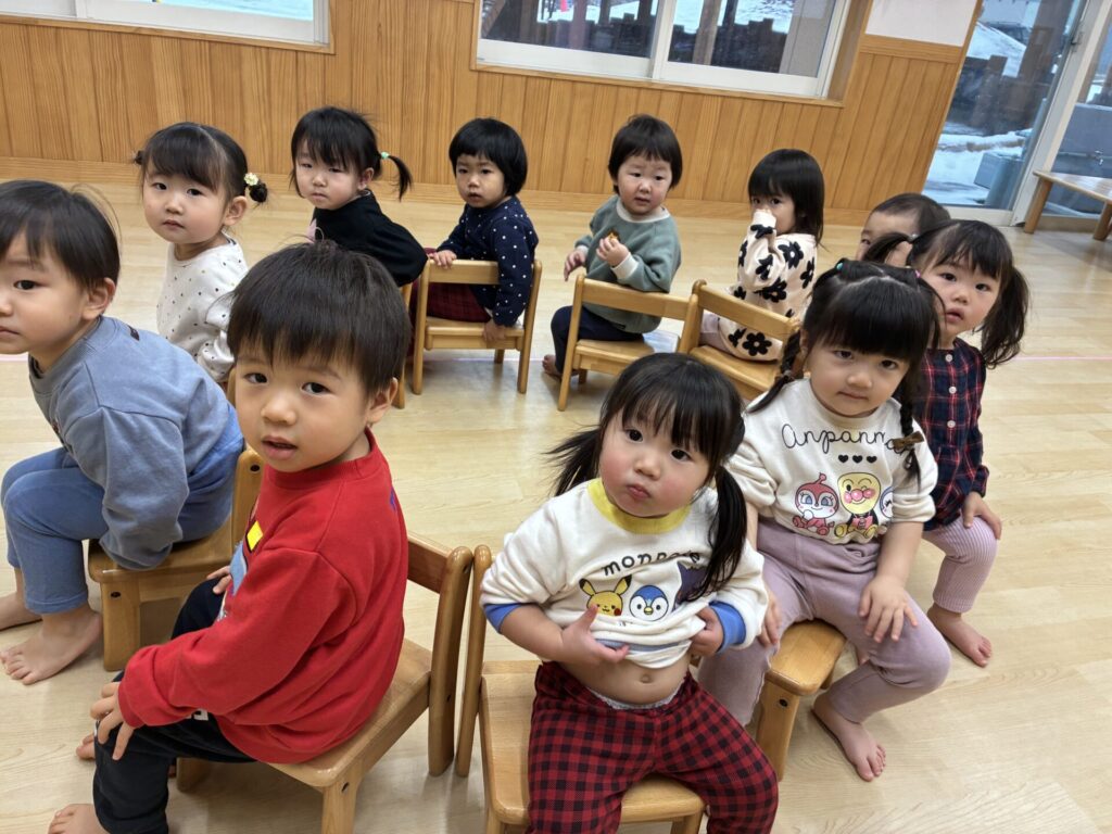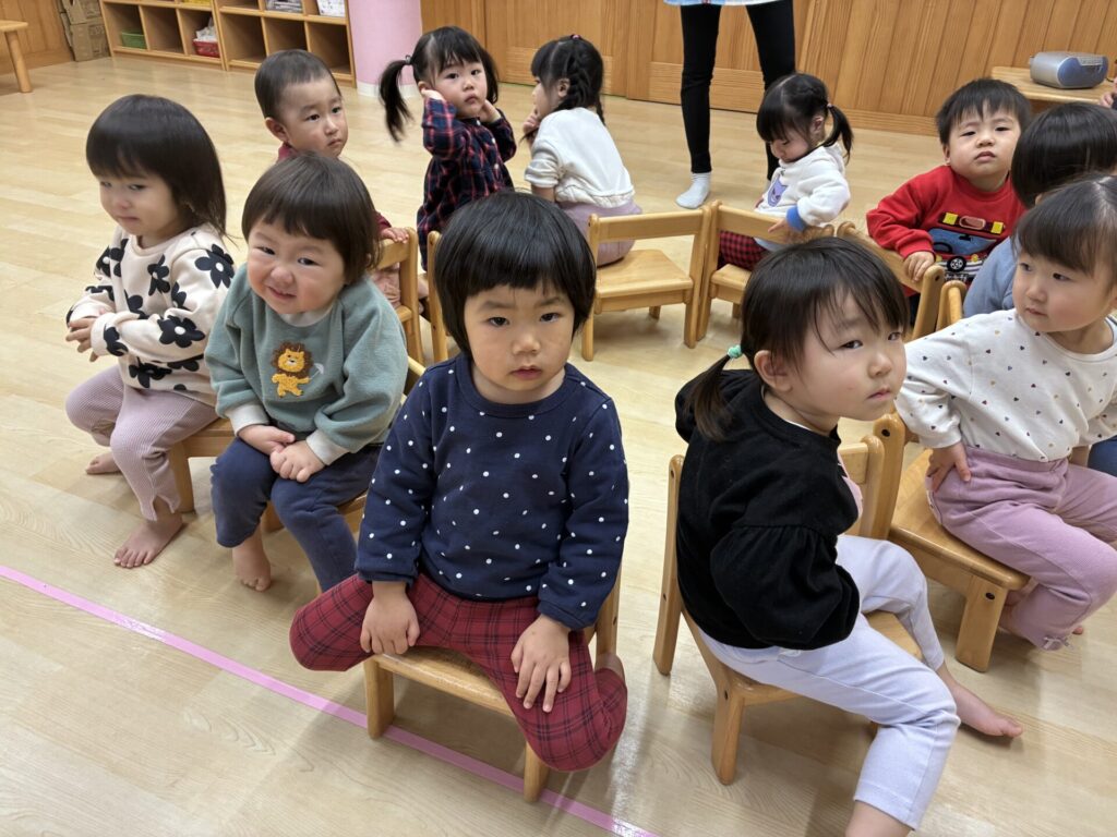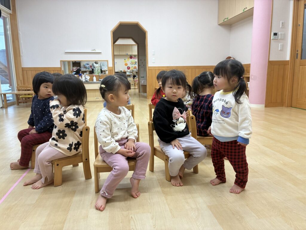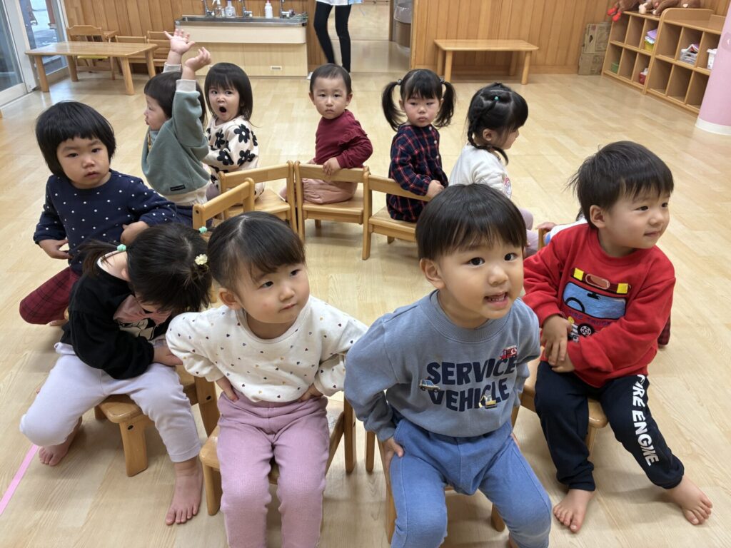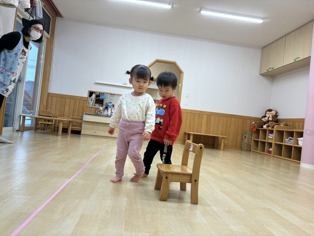 今日のクリームちゃんの活動です😊クリームちゃんはイス取りゲームをしました✨少しずつルールがわかり、自分からイスに座れる子が増えてきました🎶負けてしまい、悔し泣きをする子もいます😭集団遊びの楽しさを少しずつ味わって行こうと思います✨