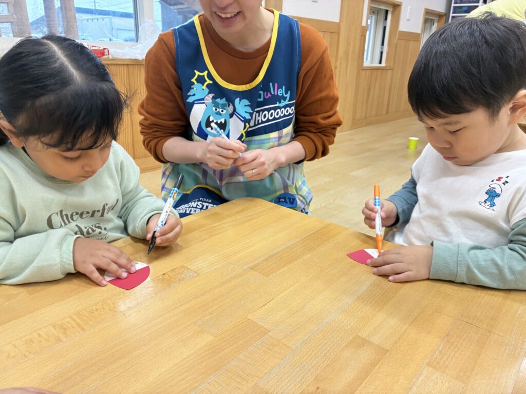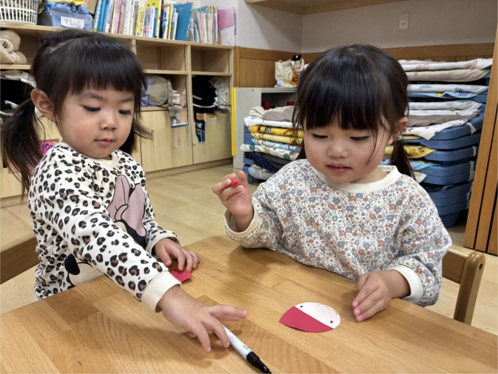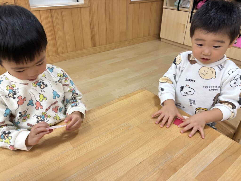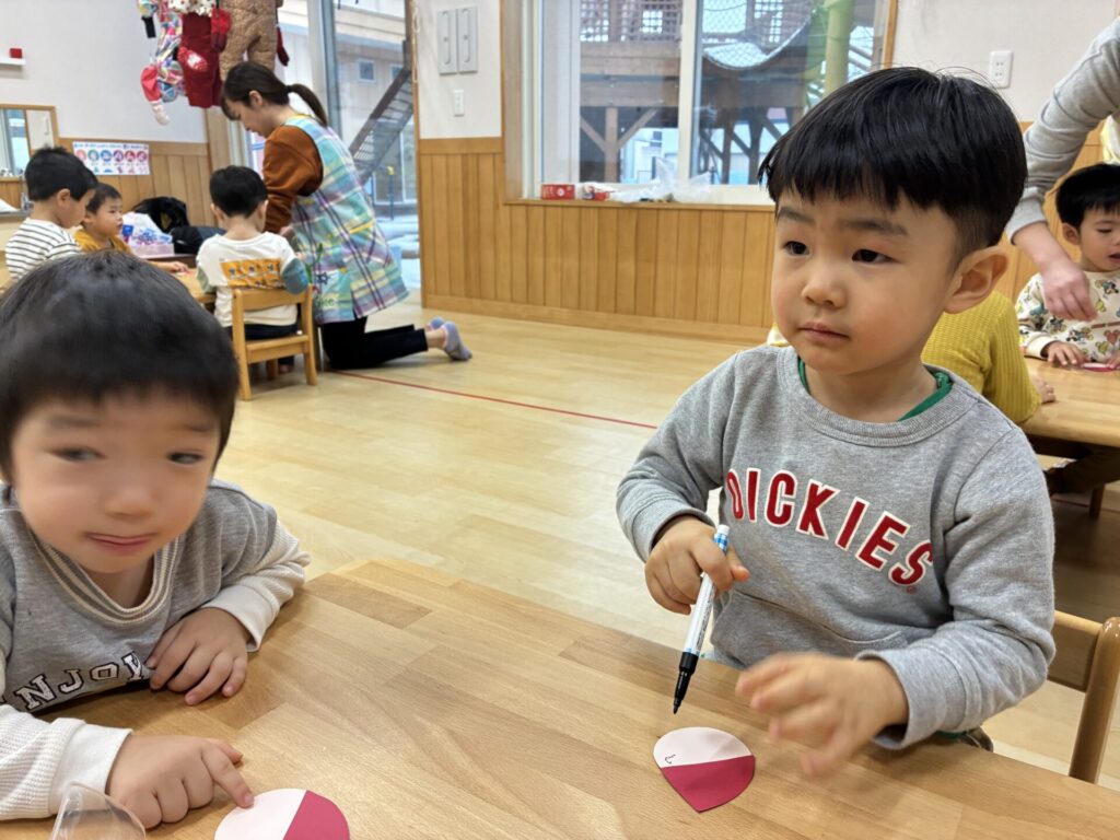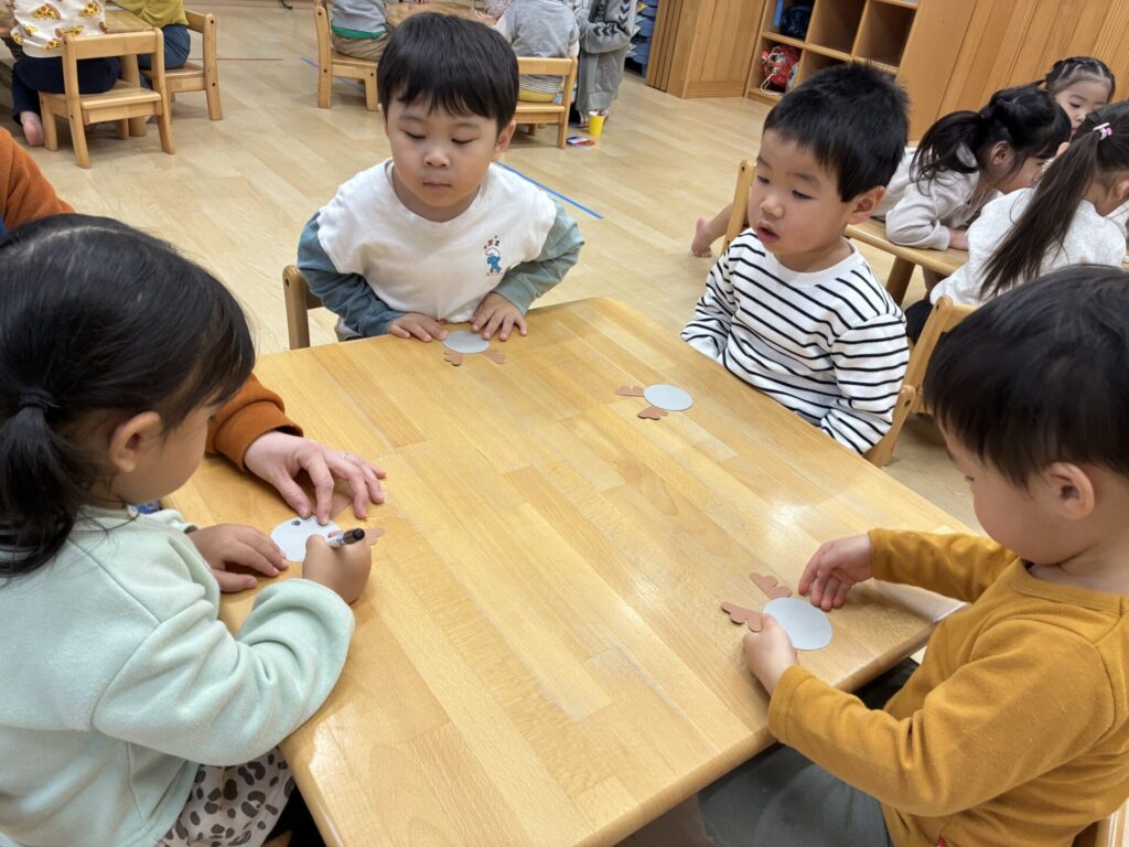 チョコちゃんは、クリスマスに向けて製作をしました✨サンタさんや、トナカイ、雪だるまを作っています😊「サンタさんに○○もらうんだぁ🥰」「いつサンタさんくるの?」などと、お友だち同士可愛らしい会話をしながら参加していましたよ🥰クリスマスが待ち遠しいですね😆🎶