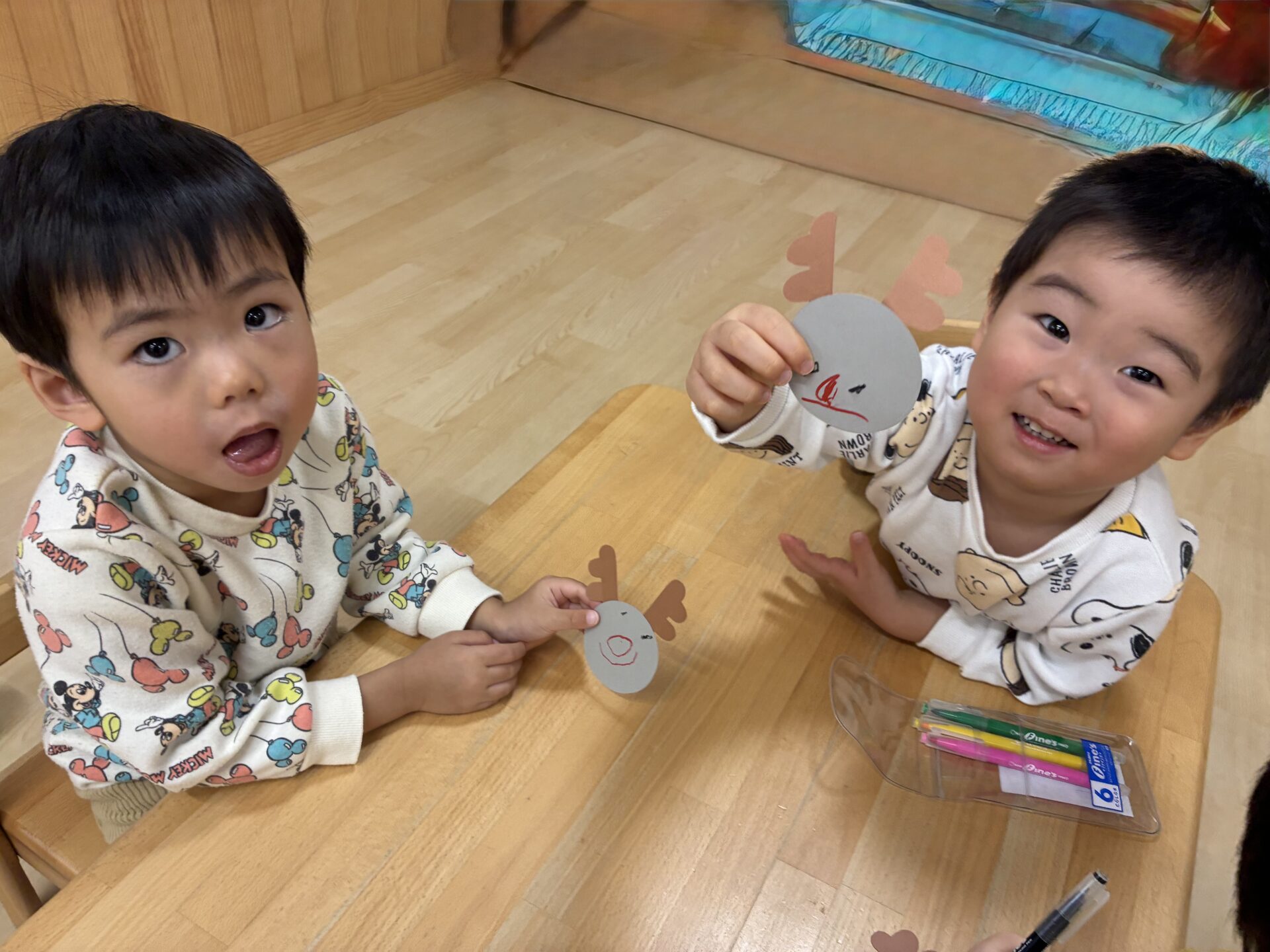 チョコちゃんは、クリスマスに向けて製作をしました✨サンタさんや、トナカイ、雪だるまを作っています😊「サンタさんに○○もらうんだぁ🥰」「いつサンタさんくるの?」などと、お友だち同士可愛らしい会話をしながら参加していましたよ🥰クリスマスが待ち遠しいですね😆🎶