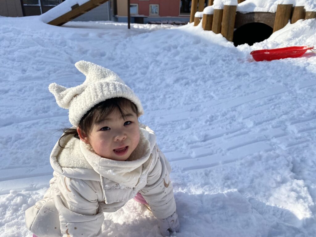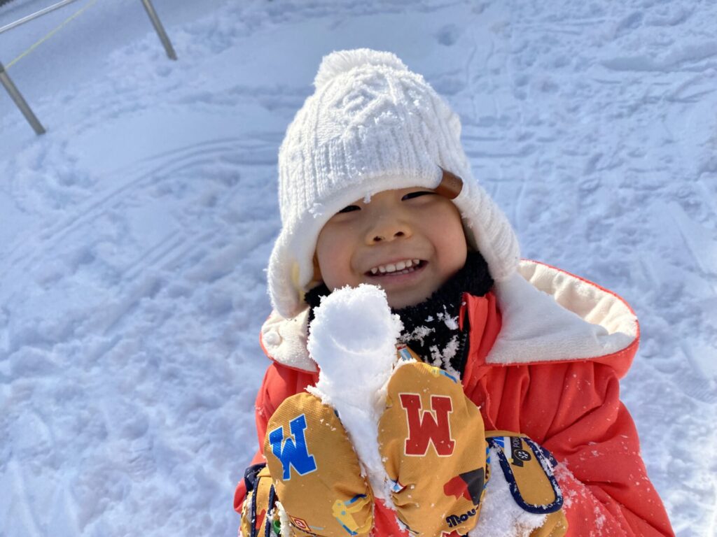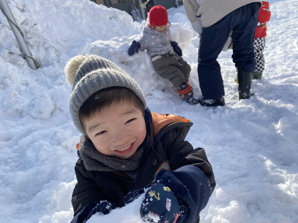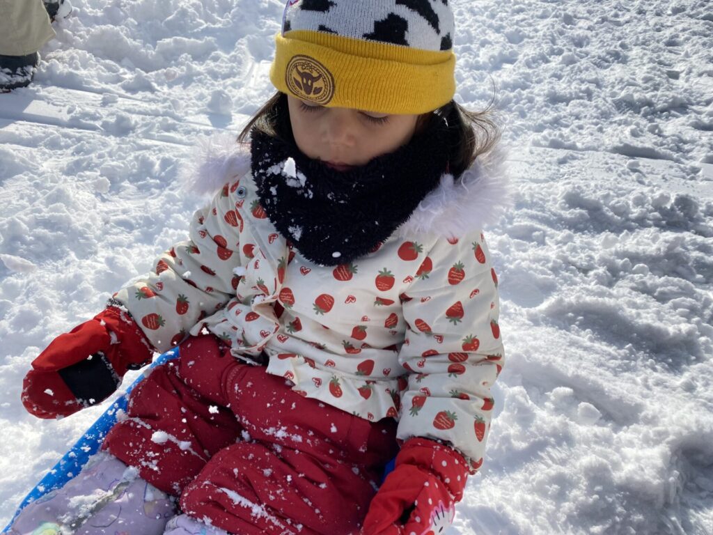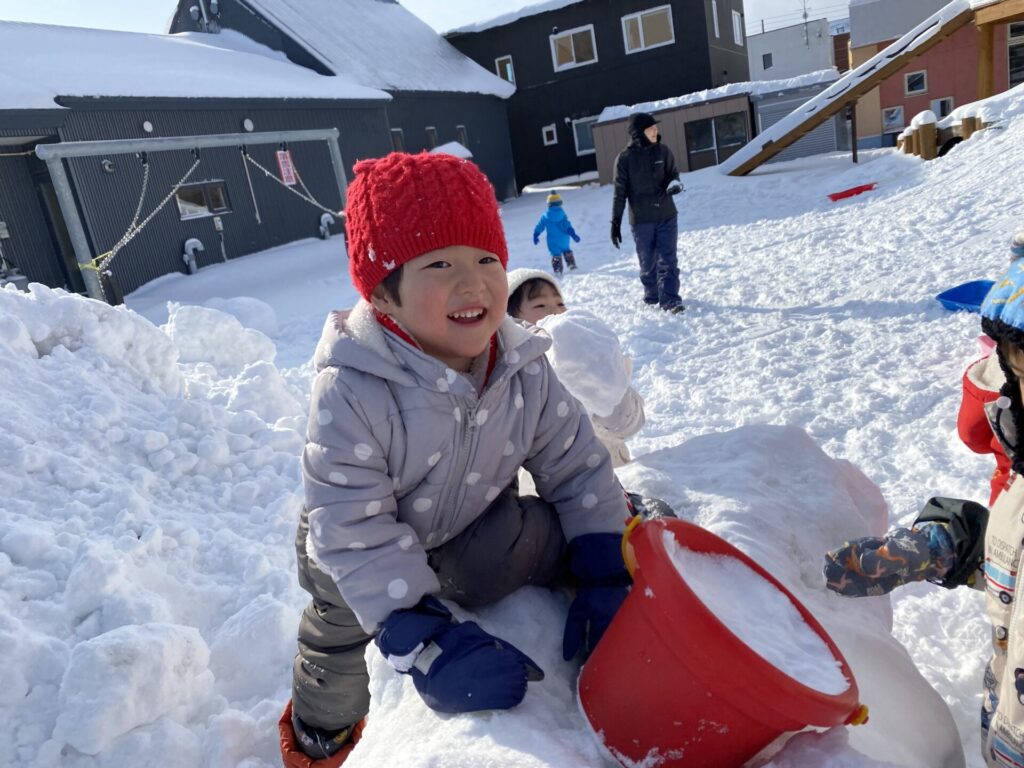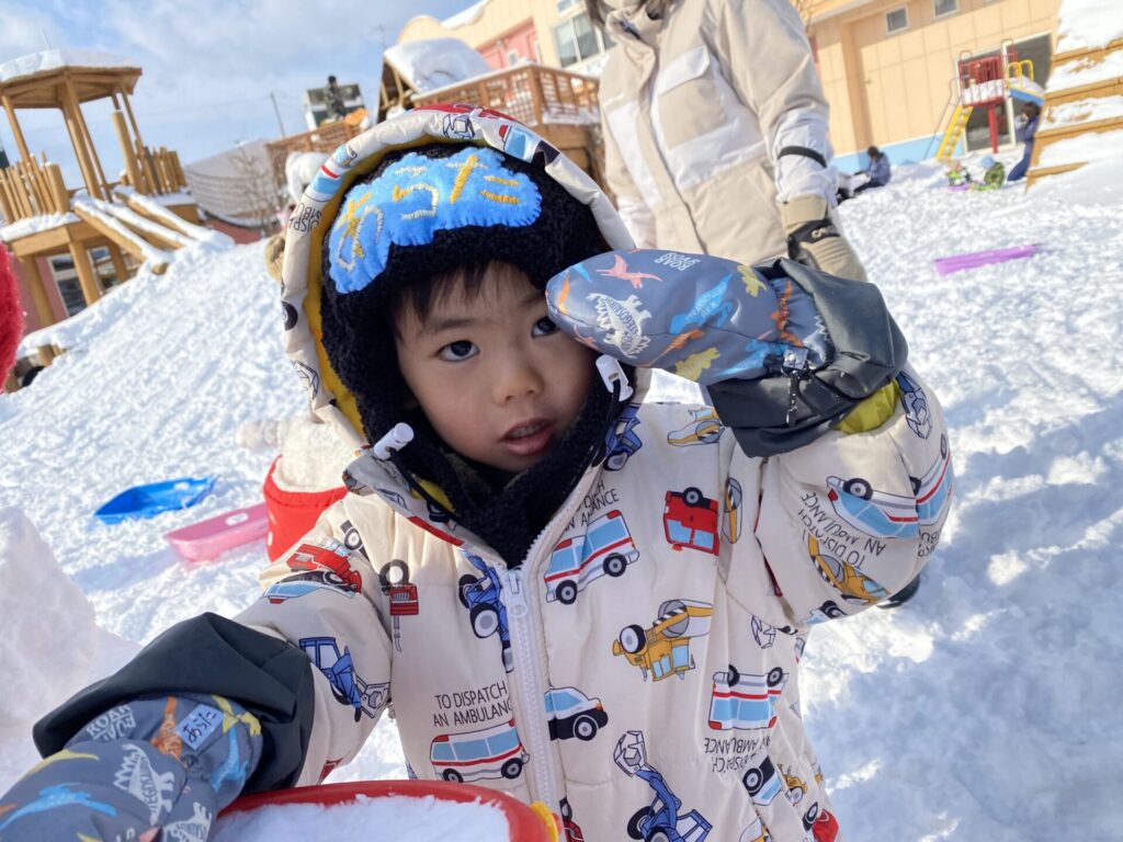 チョコさんは、雪遊びをしました😊今日は、暖かかったのでみんな元気に遊んでいます✨ソリ滑りや雪玉を作りたくさん遊びました‼️