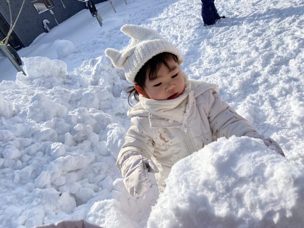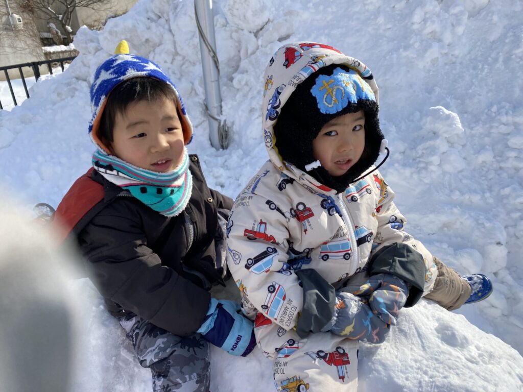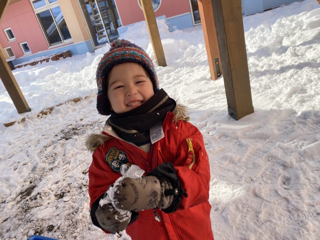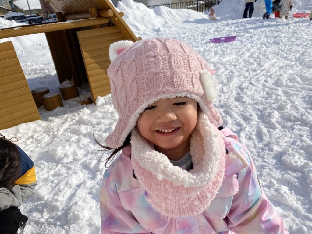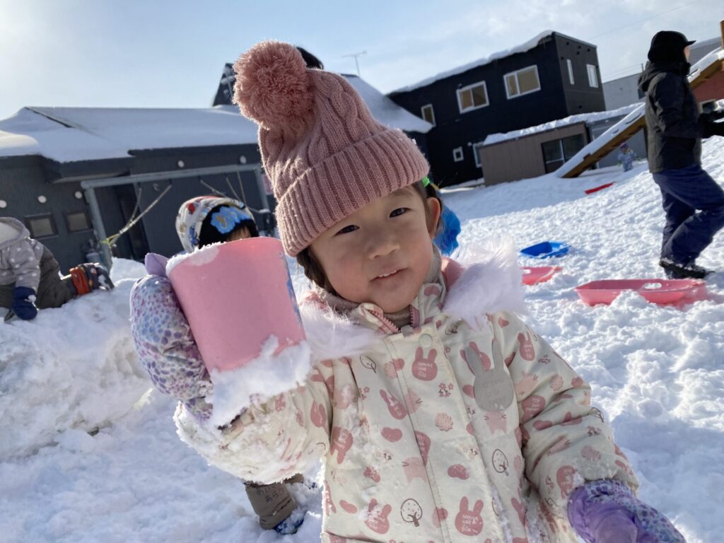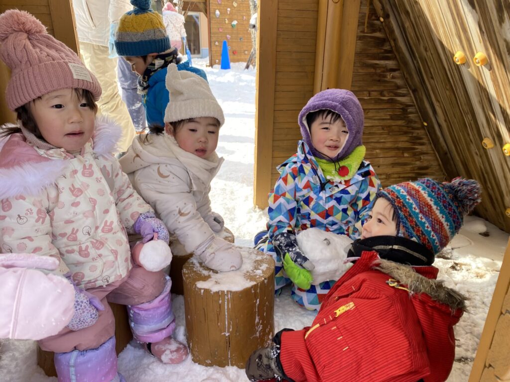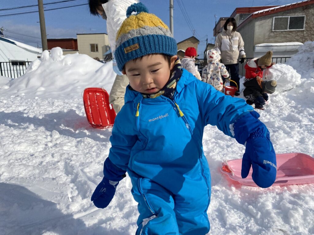 チョコさんは、雪遊びをしました😊今日は、暖かかったのでみんな元気に遊んでいます✨ソリ滑りや雪玉を作りたくさん遊びました‼️
