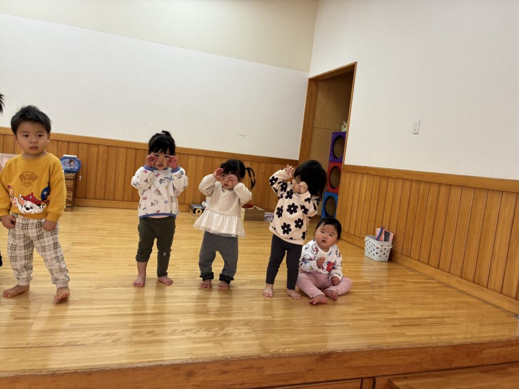 クリームちゃんは、ホールで遊びました☺️ダンスを踊ったり、ブロックで遊んだりと楽しむ子どもたちです✨