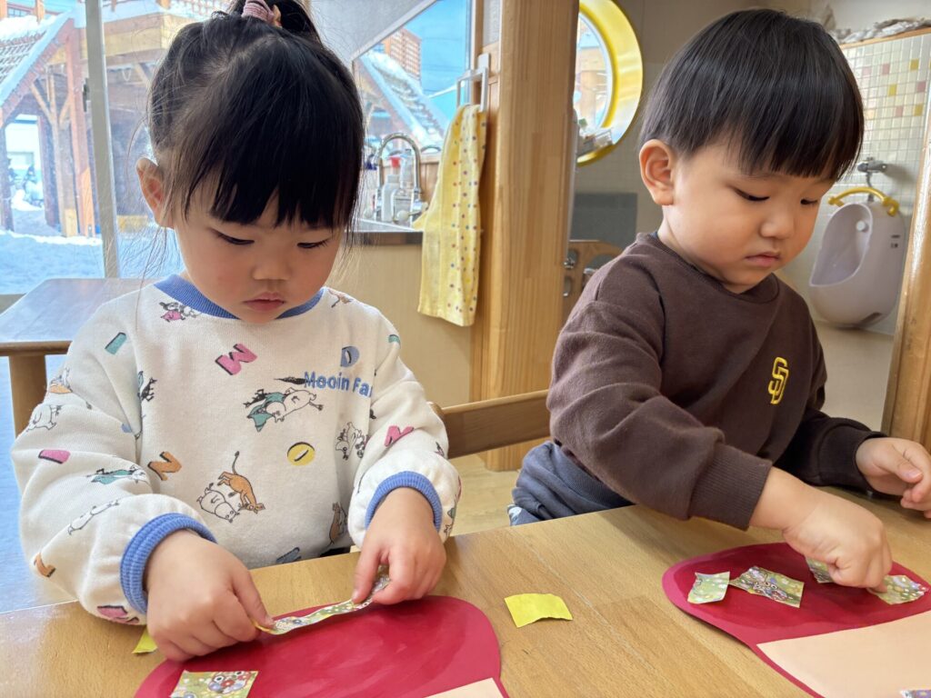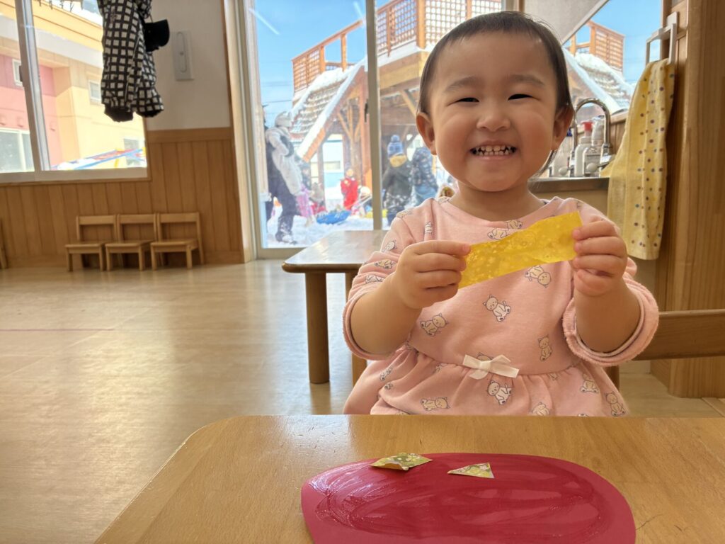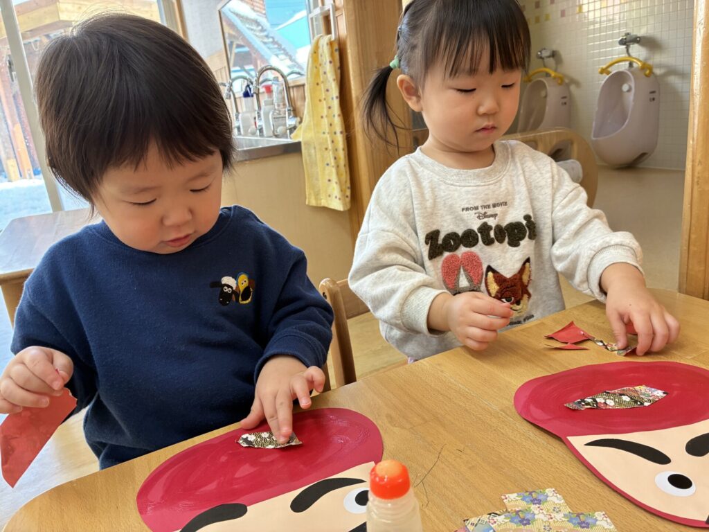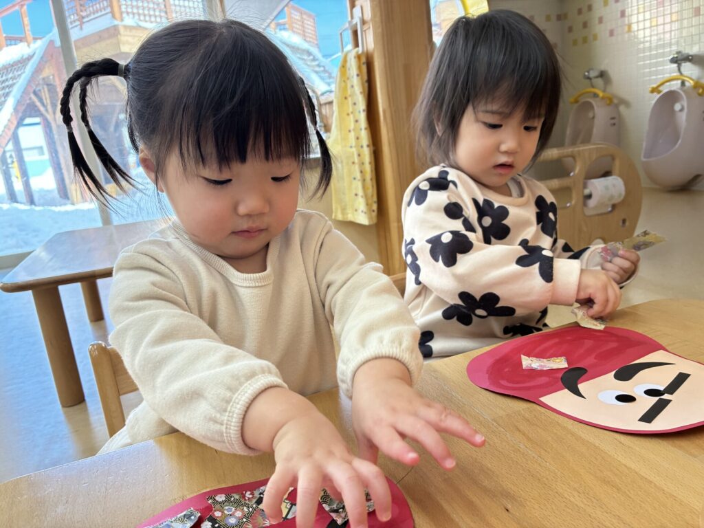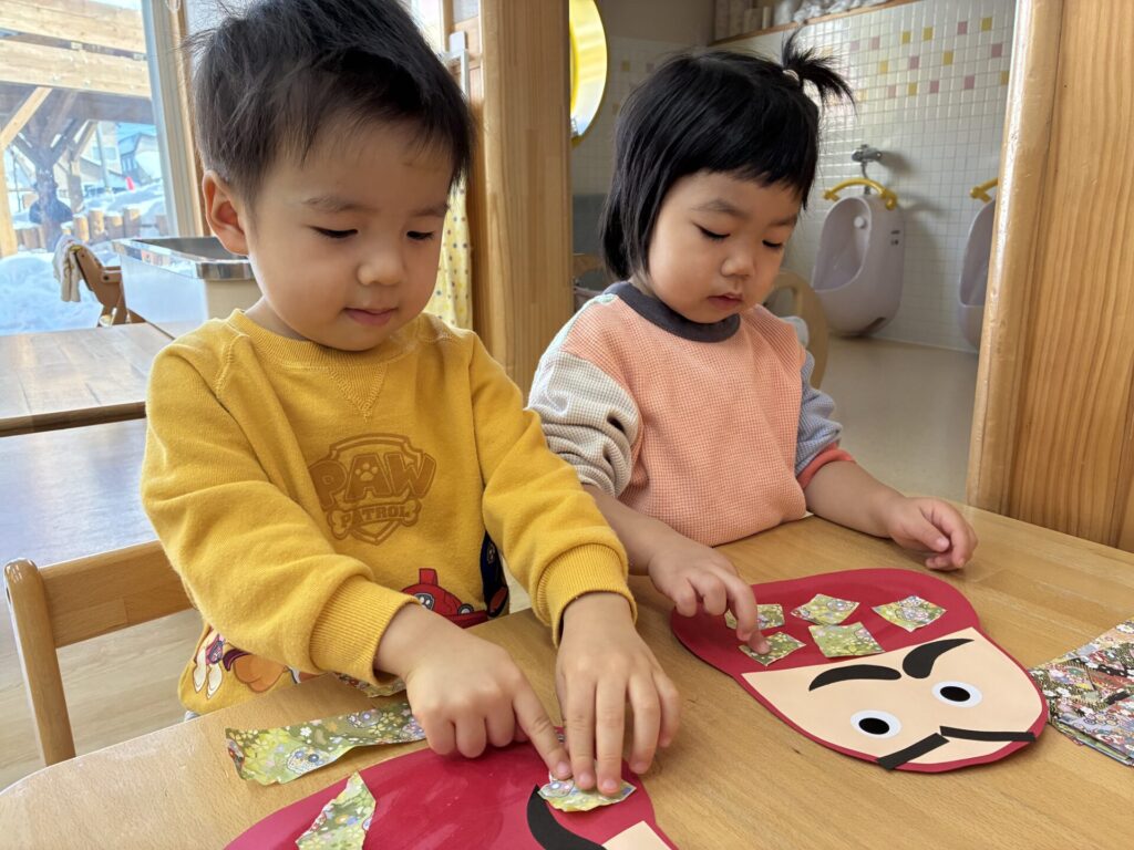 その後は、だるまの製作をしました😊折り紙をちぎって沢山貼りました😆とても素敵な作品が完成しましたよ‼️