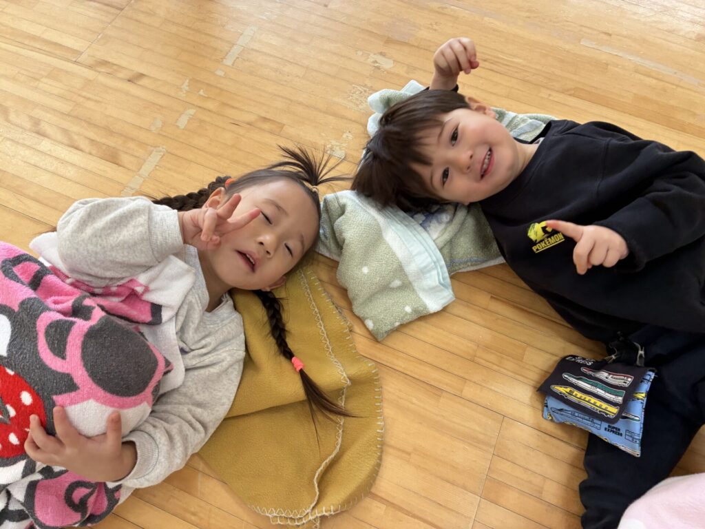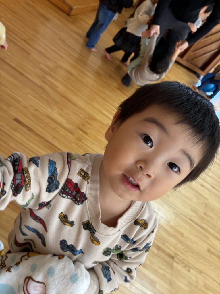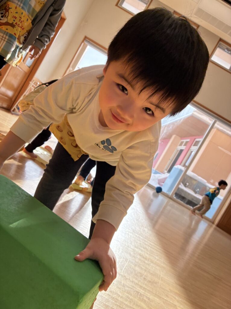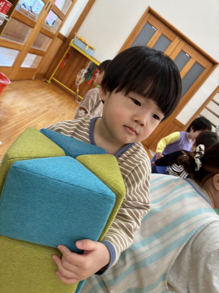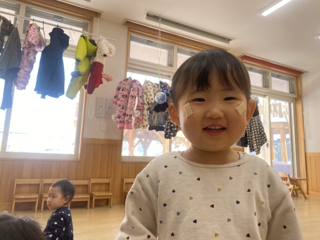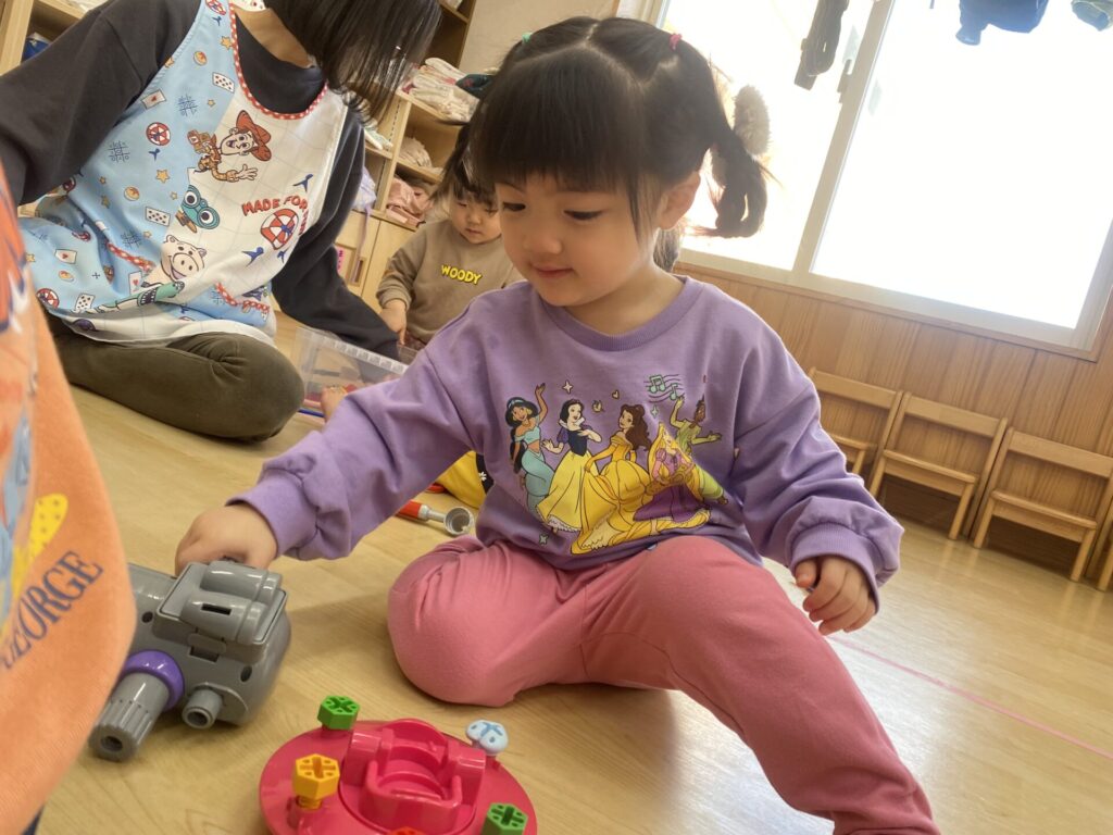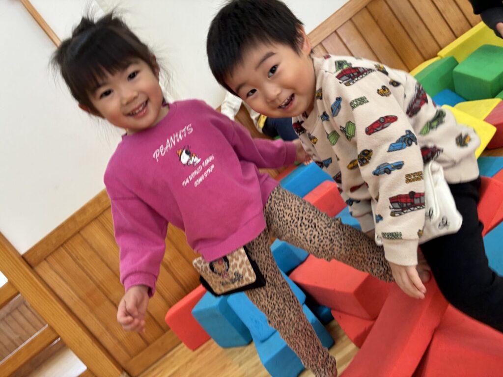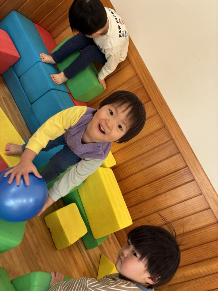 朝のホール遊びの様子です😊チョコちゃん、クリームちゃん、ひよこちゃん一緒に遊んでいます😊チョコちゃんが、小さいお友だちに優しくお世話をする様子も多く見られるようになってきました✨