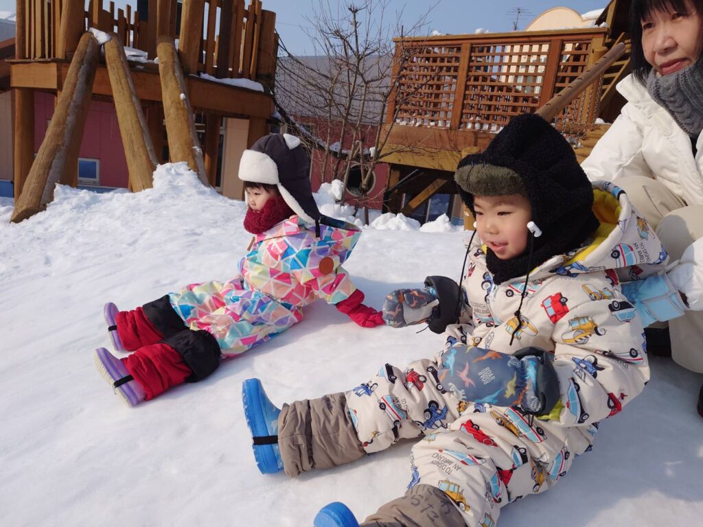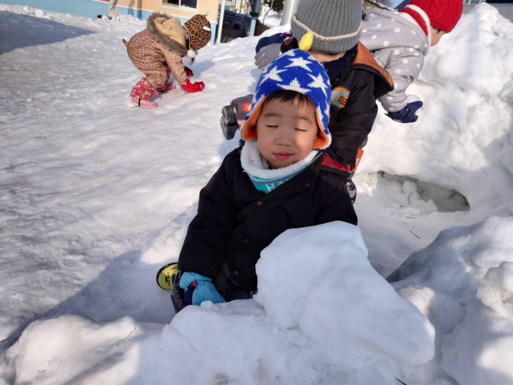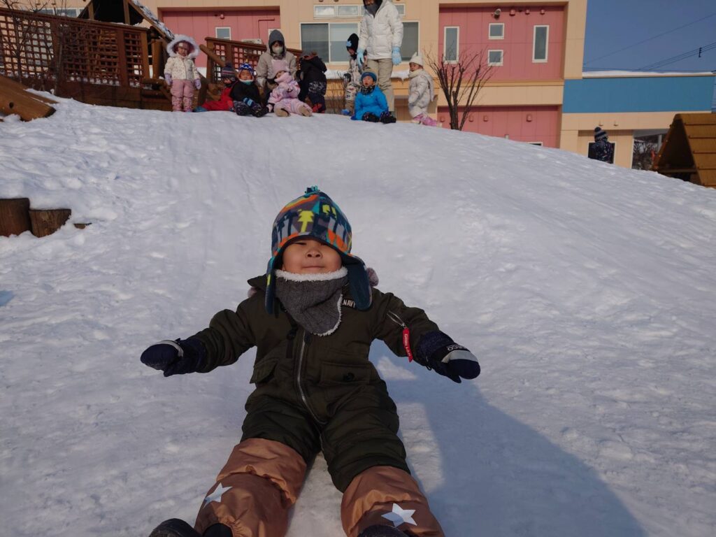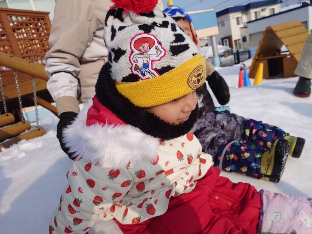 チョコさんは天気も良く雪あそびをしました‼️雪山からおしり滑りなどお友だちと一緒に楽しんでいましたよ☺️お部屋ではお仕事をしました。子どもたちも集中して最後まで取り組んでいました✨