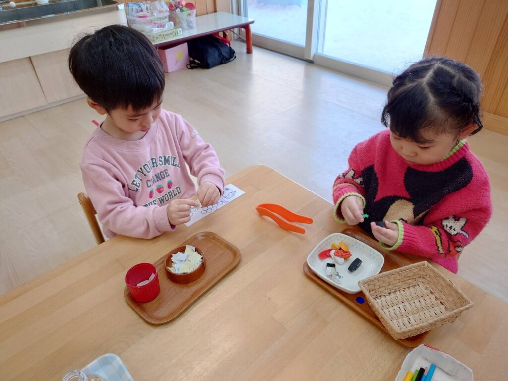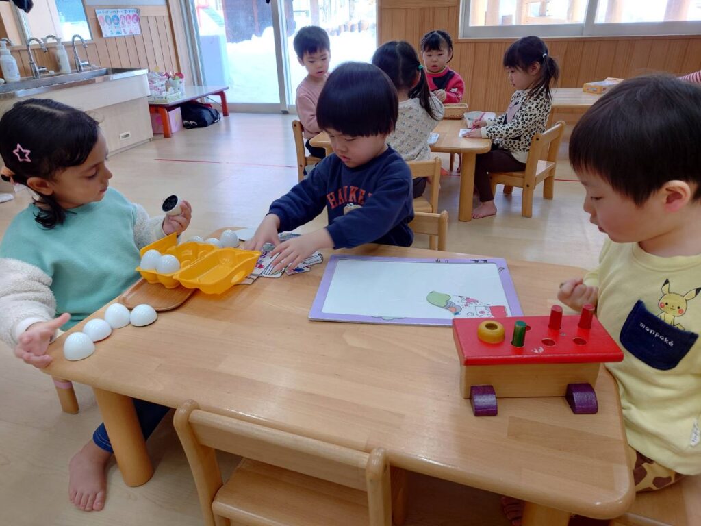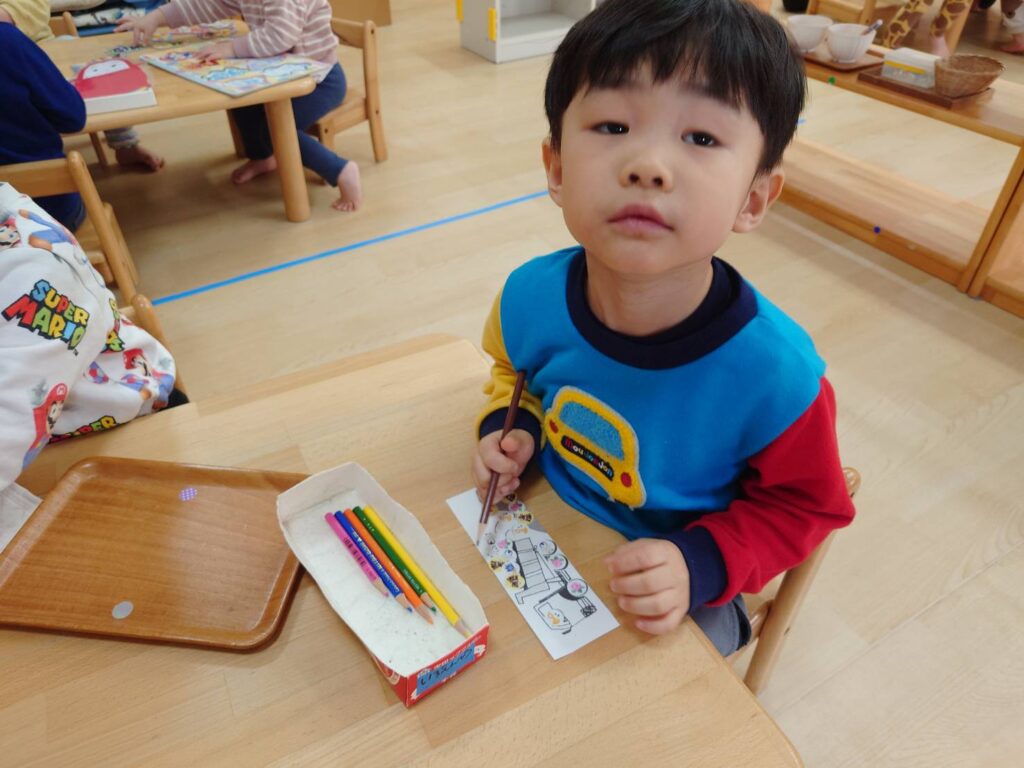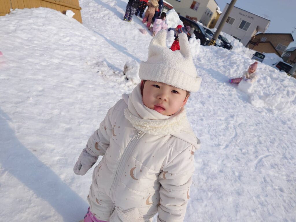 チョコさんは天気も良く雪あそびをしました‼️雪山からおしり滑りなどお友だちと一緒に楽しんでいましたよ☺️お部屋ではお仕事をしました。子どもたちも集中して最後まで取り組んでいました✨