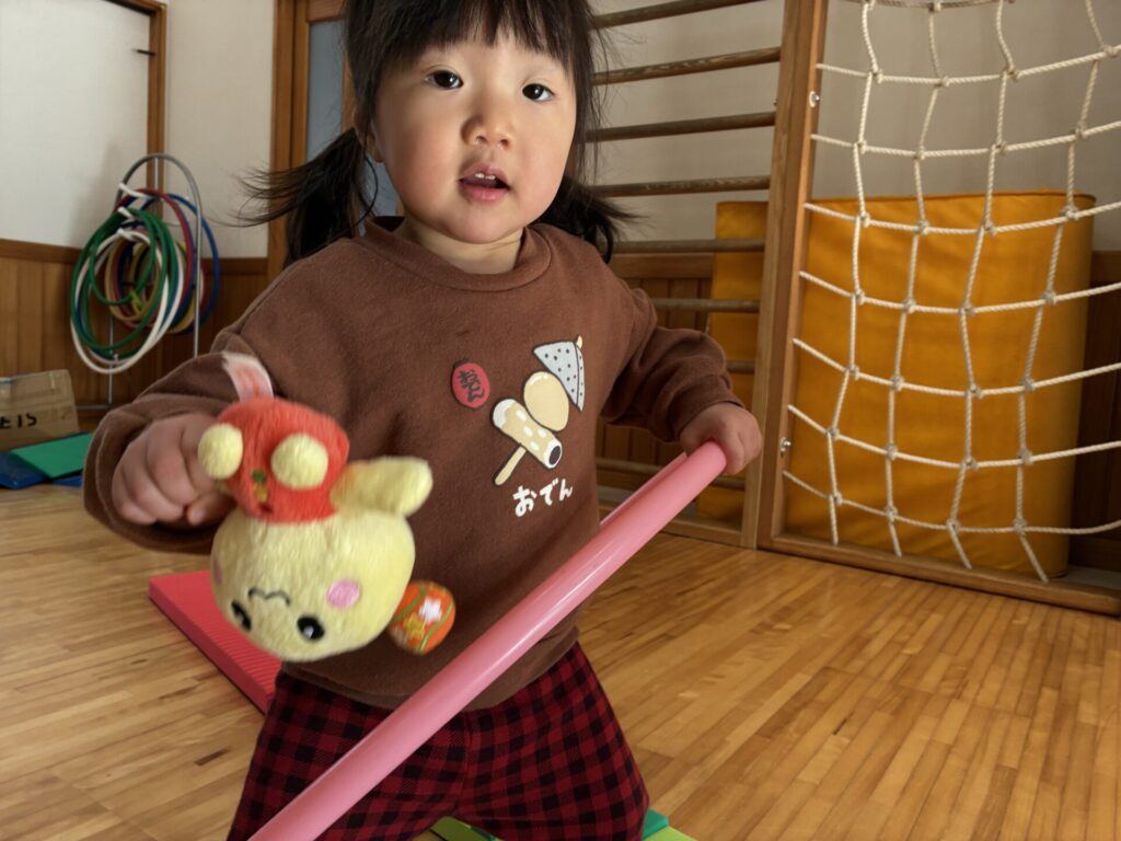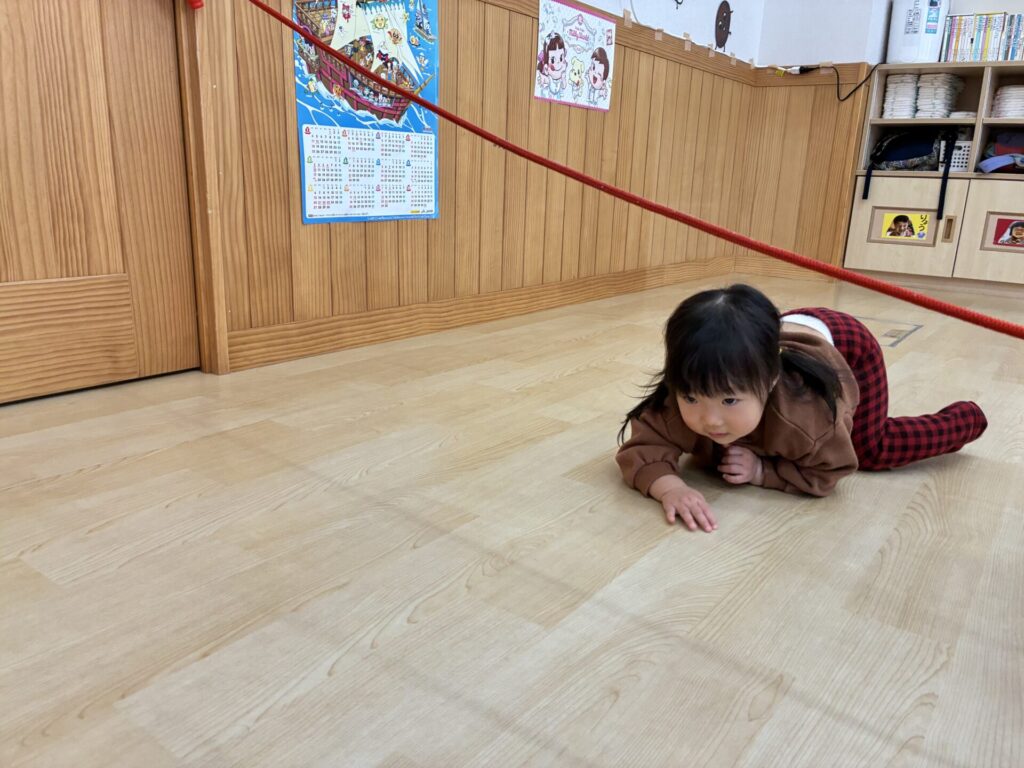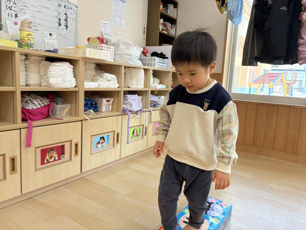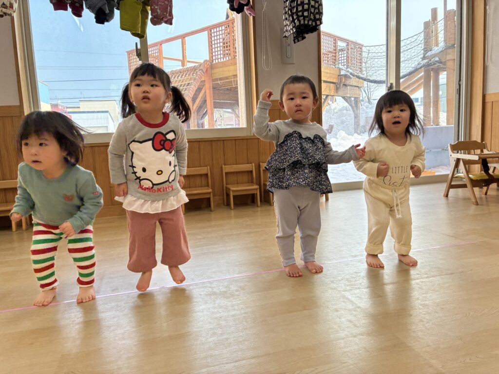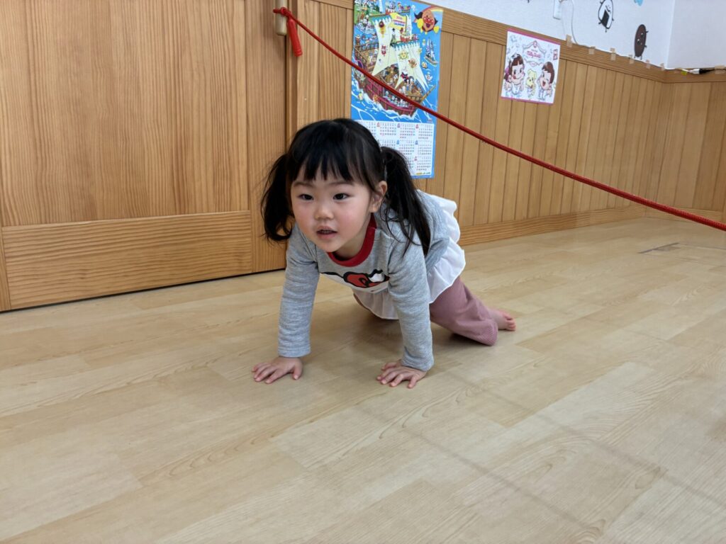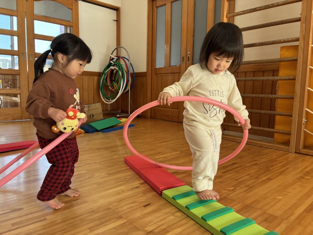 子どもたちも、縄跳びをくぐったり、台の上を落ちないように歩いたりと楽しんで取り組んでいました🎶
