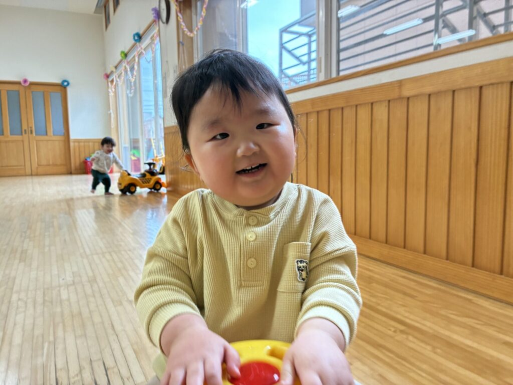 クリームちゃんです☺️クリームちゃんはホールでたくさん身体を動かして遊びました✨新しいお友だちは、涙する時もありましたが、少しずつ遊べる時間も増えてきました🤗ゆっくり園の生活に慣れていきましょうね💕明日も元気に登園待っています🥰