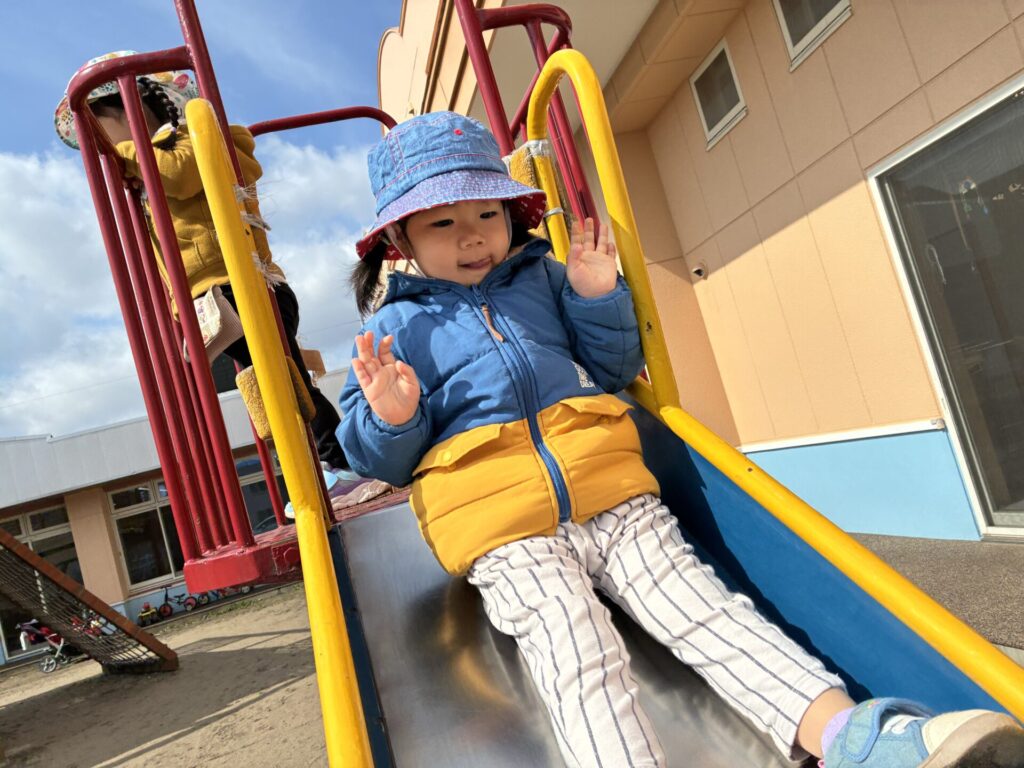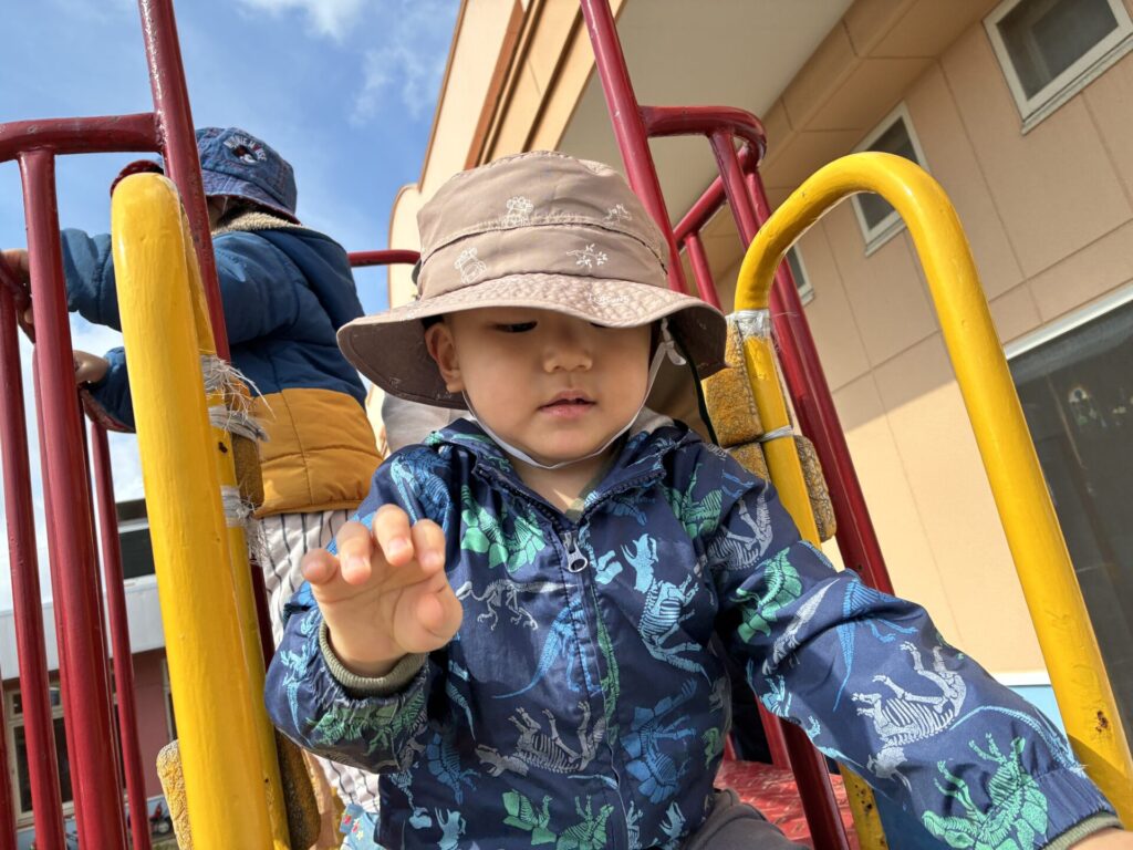 チョコさんは園庭で遊びました‼️子どもたちも滑り台やブランコで遊んだり🎶園庭の山に登って、山の上からお友だちに「お~い!」と声をかけたりと時間いっぱい楽しんで遊ぶ子ども達でした😊✨