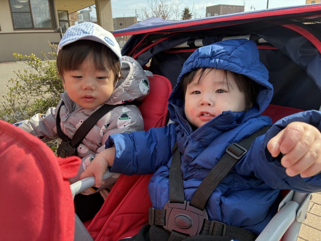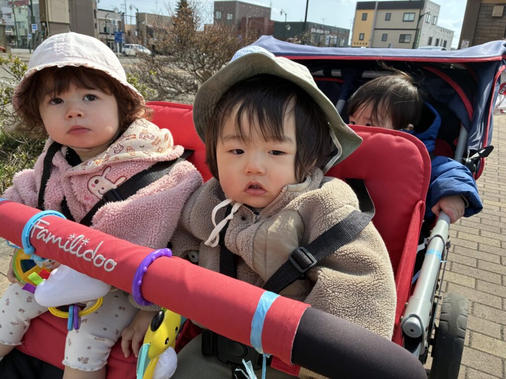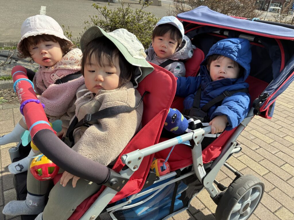 クリームちゃんは駅の方までお散歩に行って来ました😄子どもたちも、お散歩カートに乗って町の中を興味津々で周りを見渡していましたよ🎶新しいお友だちも少しづつ慣れてきたようでお部屋では笑顔で楽しそうに過ごしていましたよ🥰