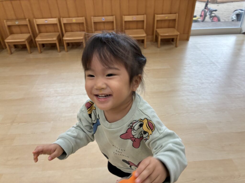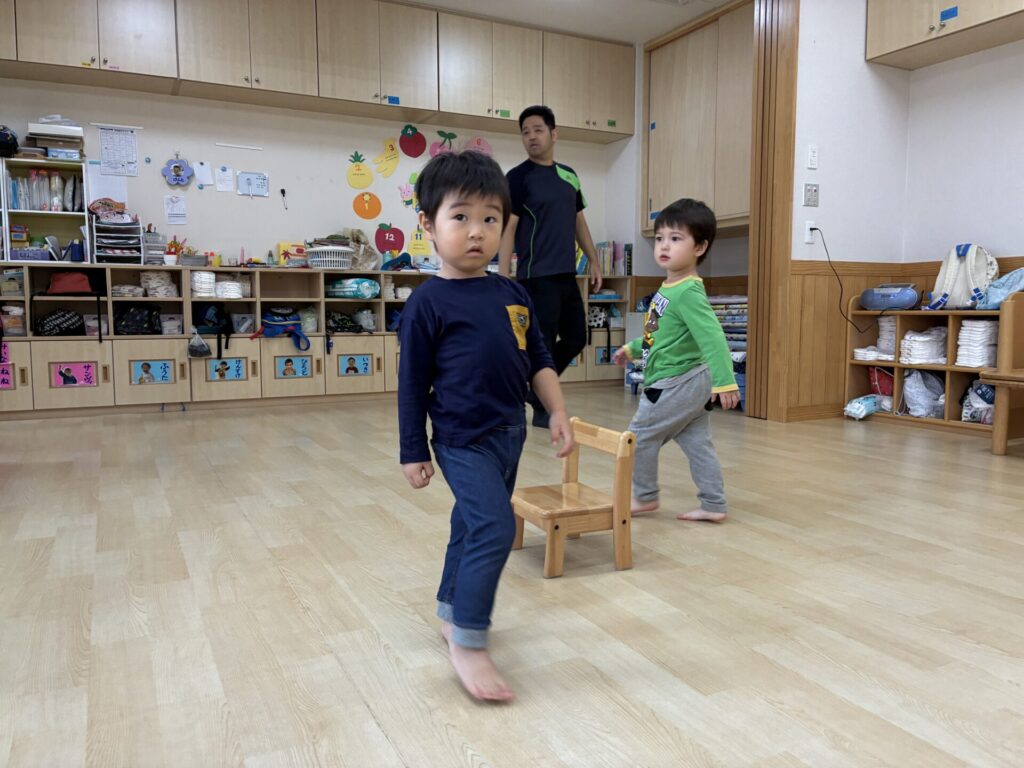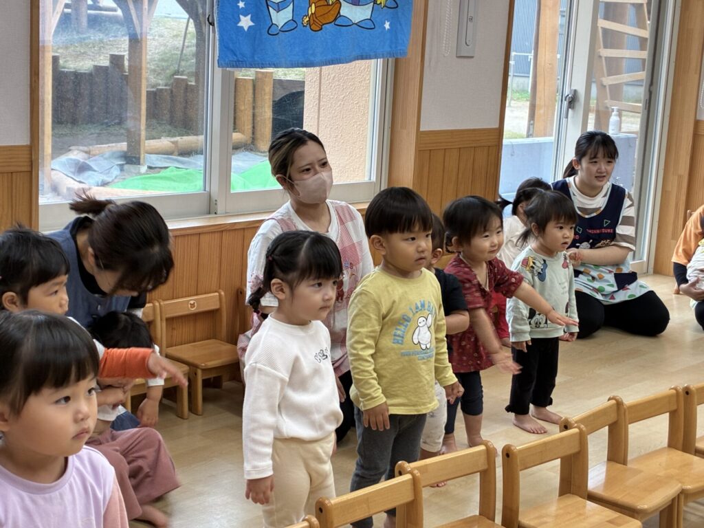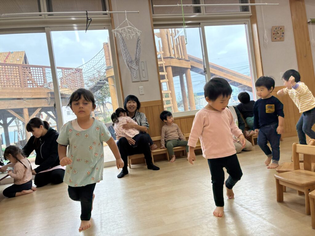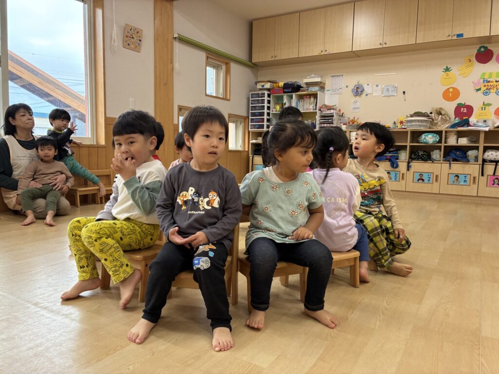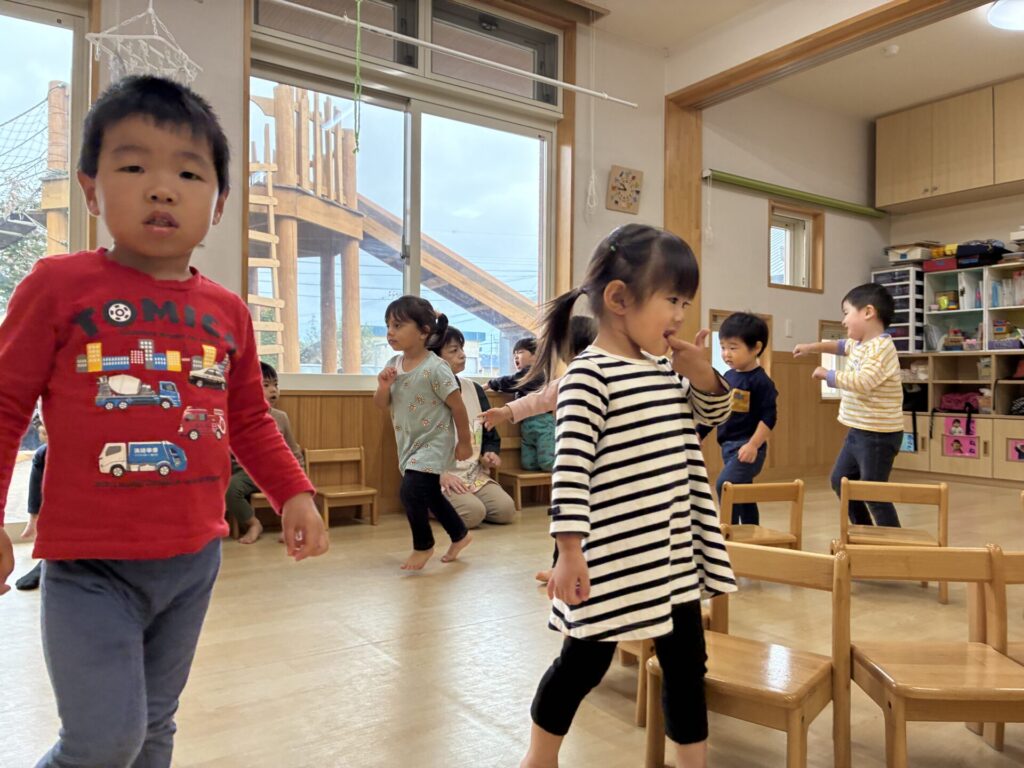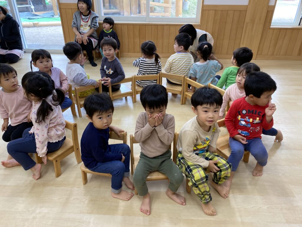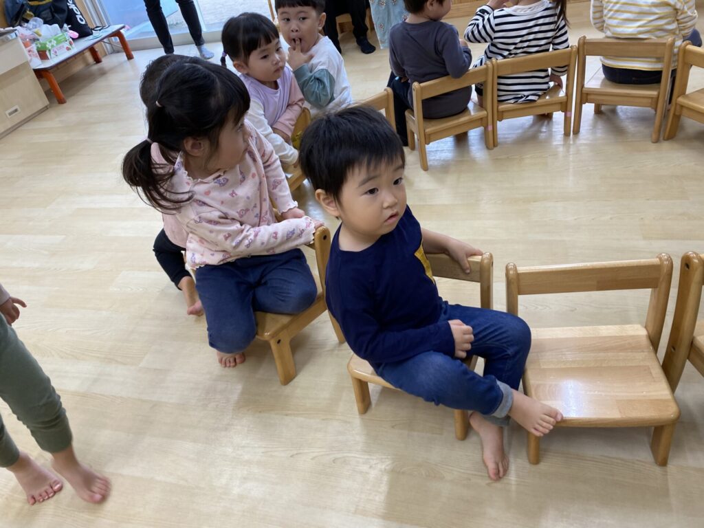 座れなくて涙する子もいましたが、「またやりたい!」と言う声も聞こえてきました😆ルールのある遊びにも楽しんで参加できるようになっています😊