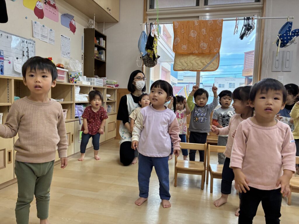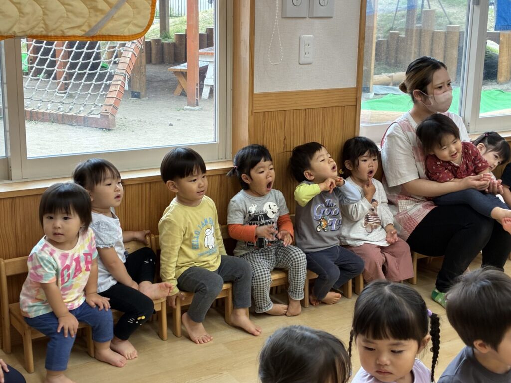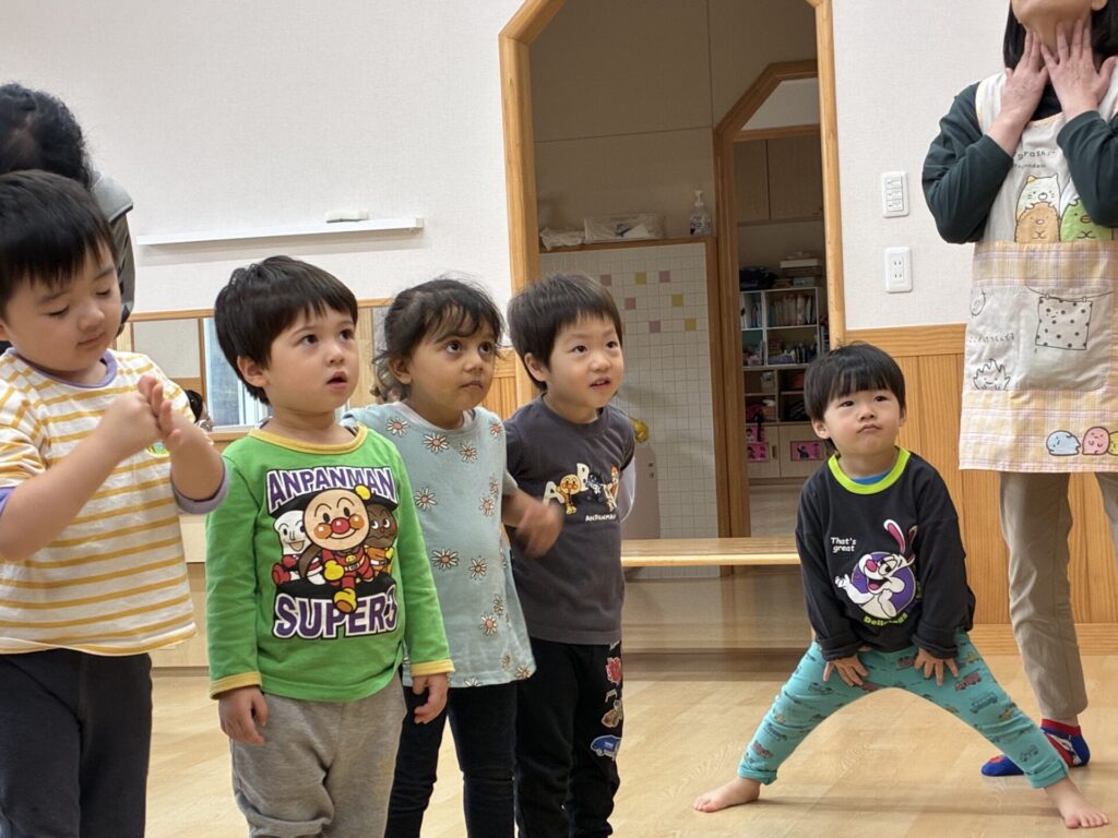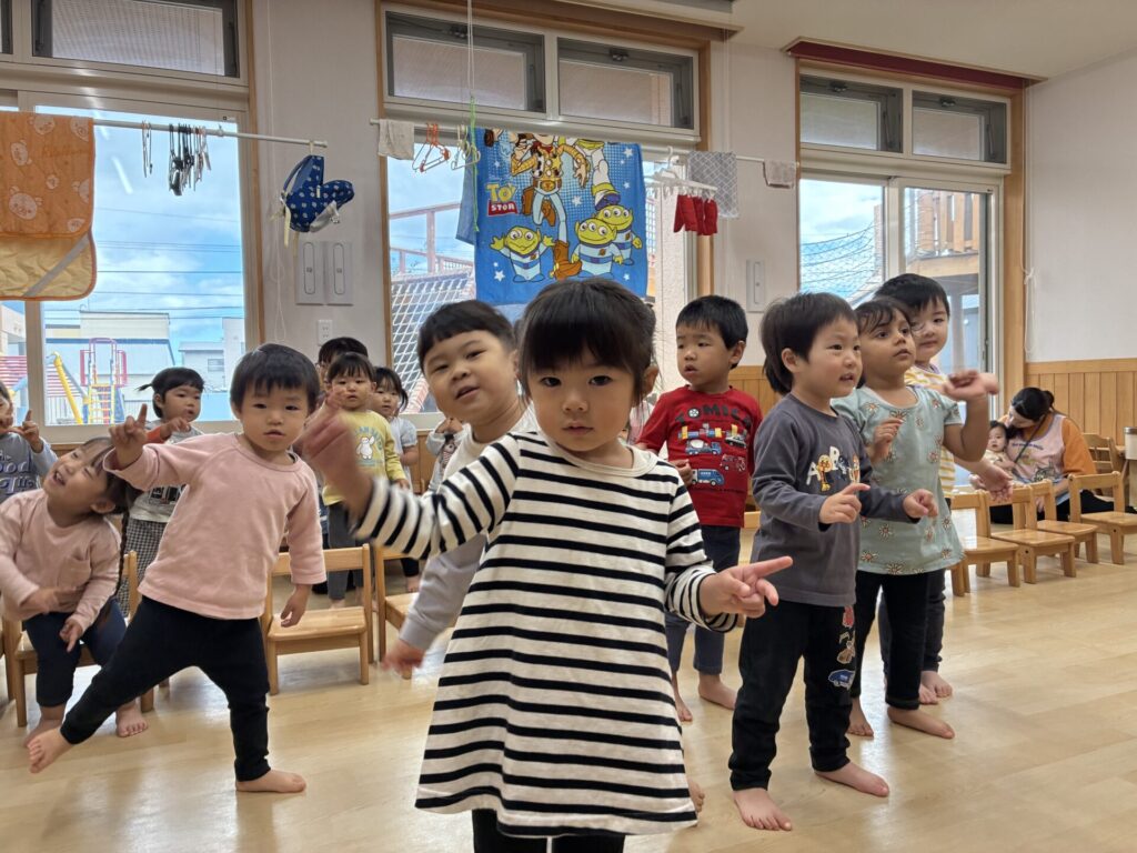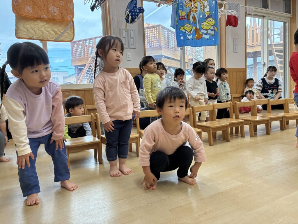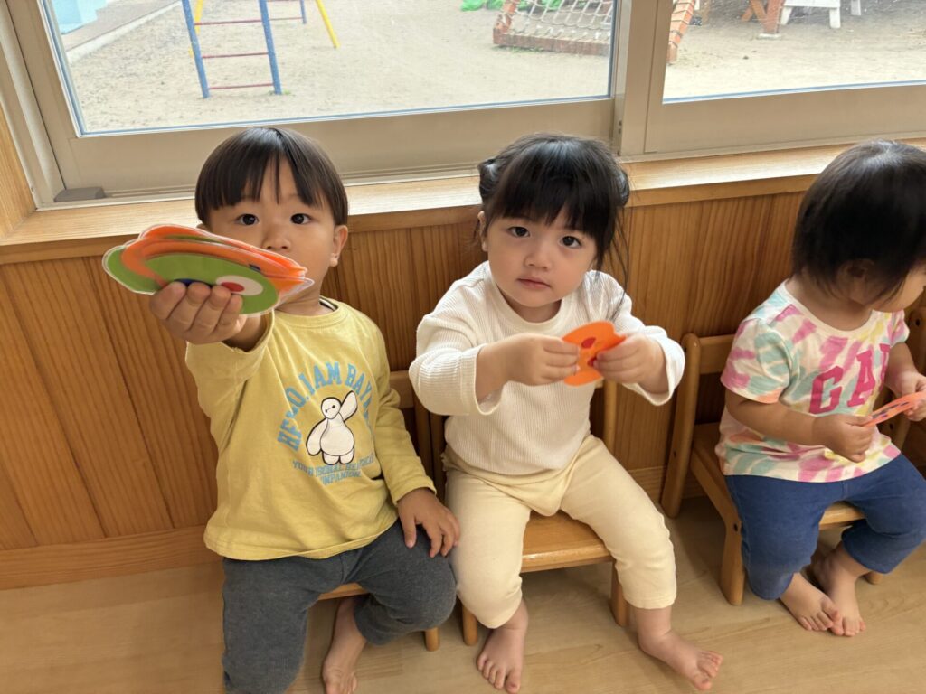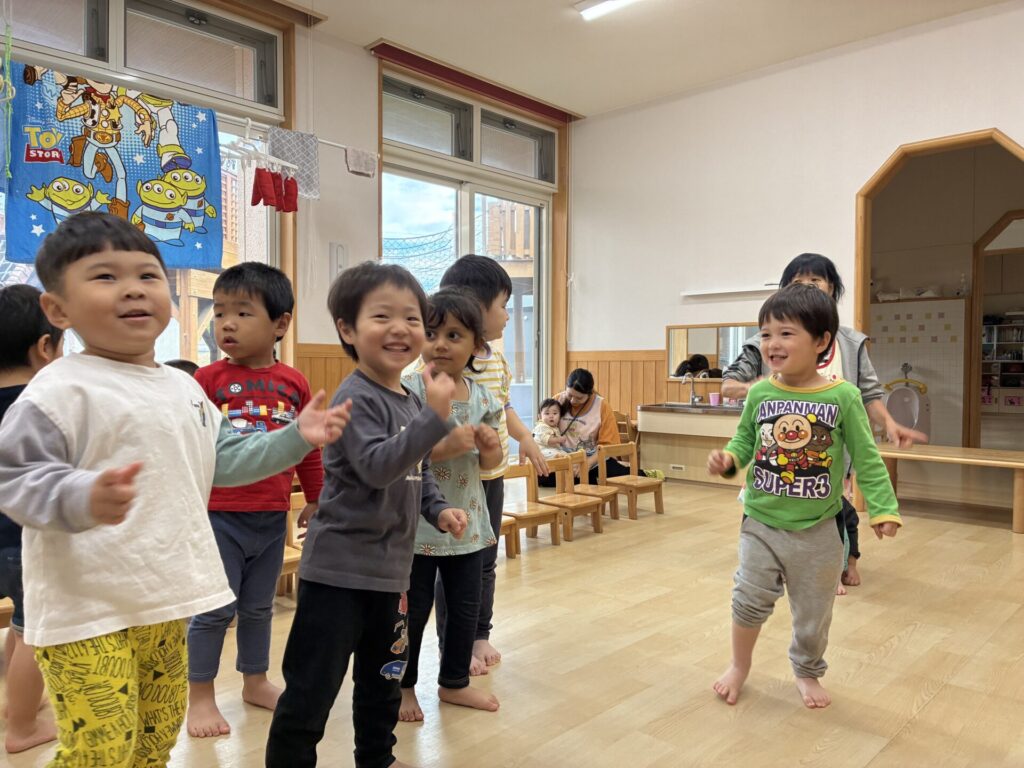 座れなくて涙する子もいましたが、「またやりたい!」と言う声も聞こえてきました😆ルールのある遊びにも楽しんで参加できるようになっています😊
