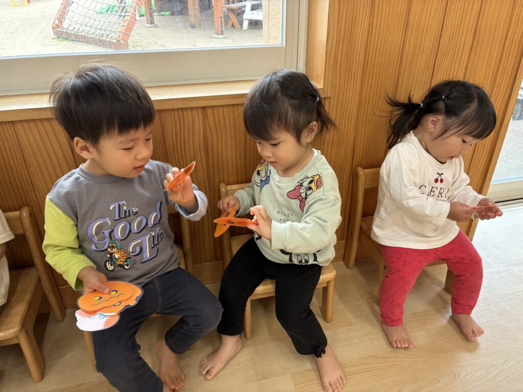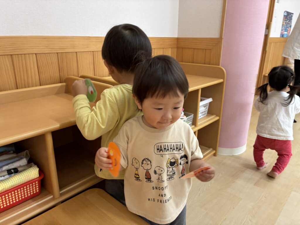 活動の様子です😊クリームちゃんは、お絵描きと、ハロウィンのカード探しをしました🎶「どこにあるかなな?」と自分達で探す姿がとっても可愛らしかったです🥰