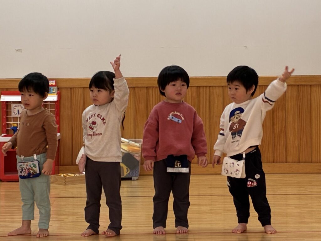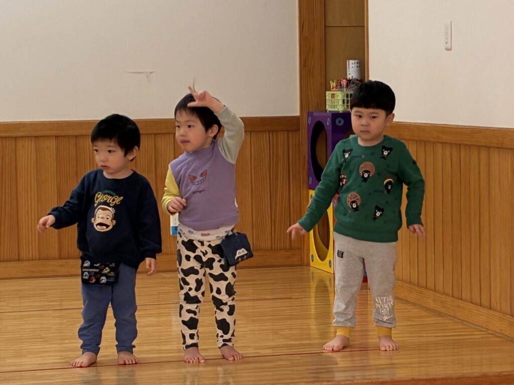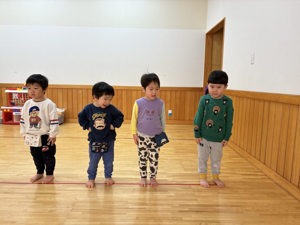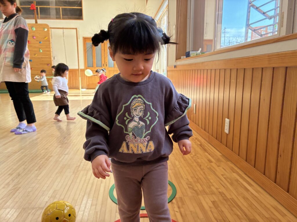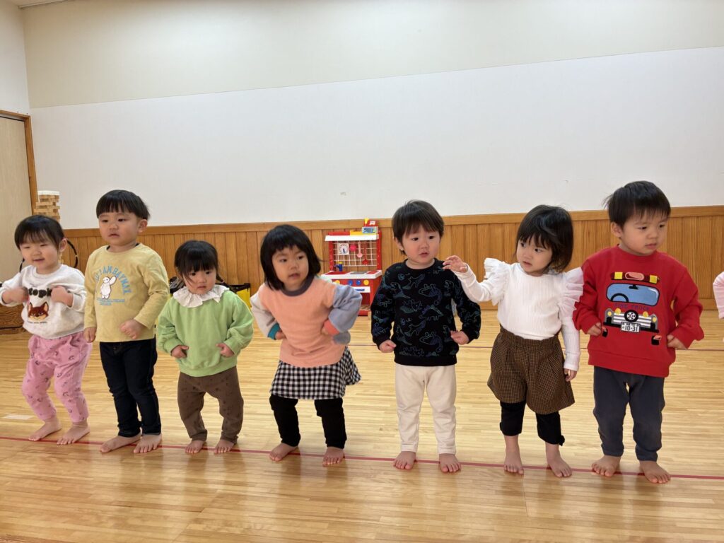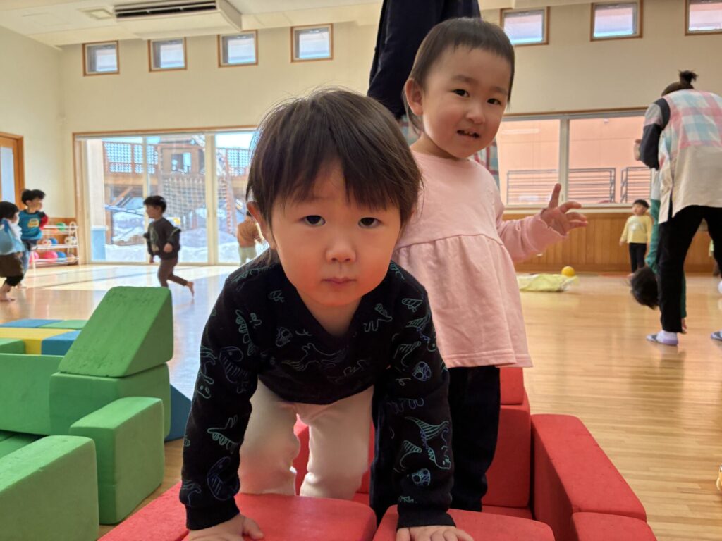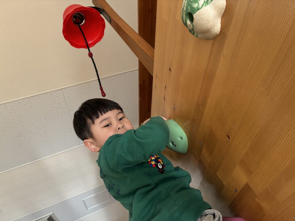 ダンス練習後は、ホール遊びをしています☺️ボルダリングに挑戦する子も増え、今まで1段しか登れなかった子が、自分の力だけで2段・3段目まで登れるようになっていて成長を感じています🤗お友だちとの言葉でやり取りする姿も多く見られるようになりました☺️✨進級までも少し…チョコちゃんは、「赤ばっちさんになる⤴」と楽しみにしている姿が増えてきました✨残り1か月、みんなで楽しく過ごそうね🥰