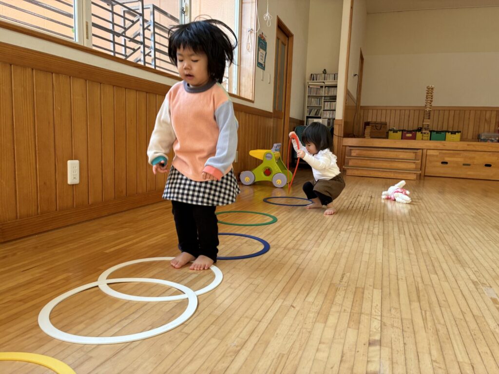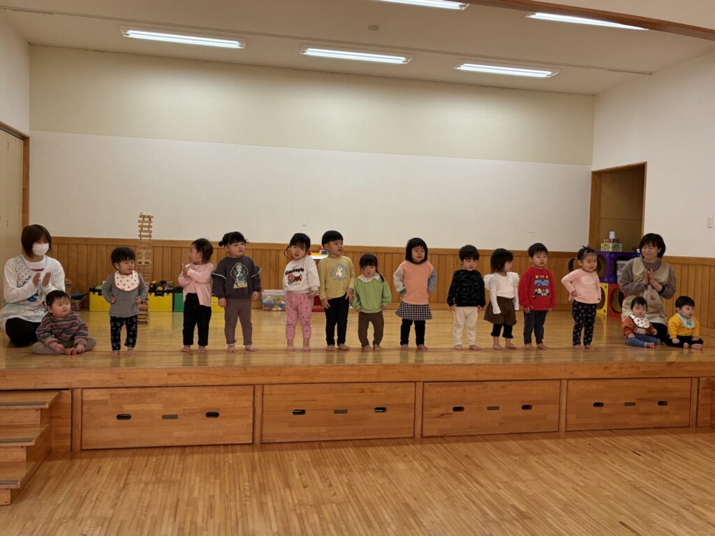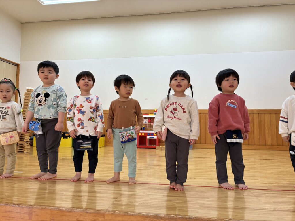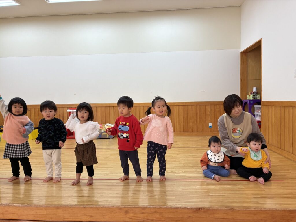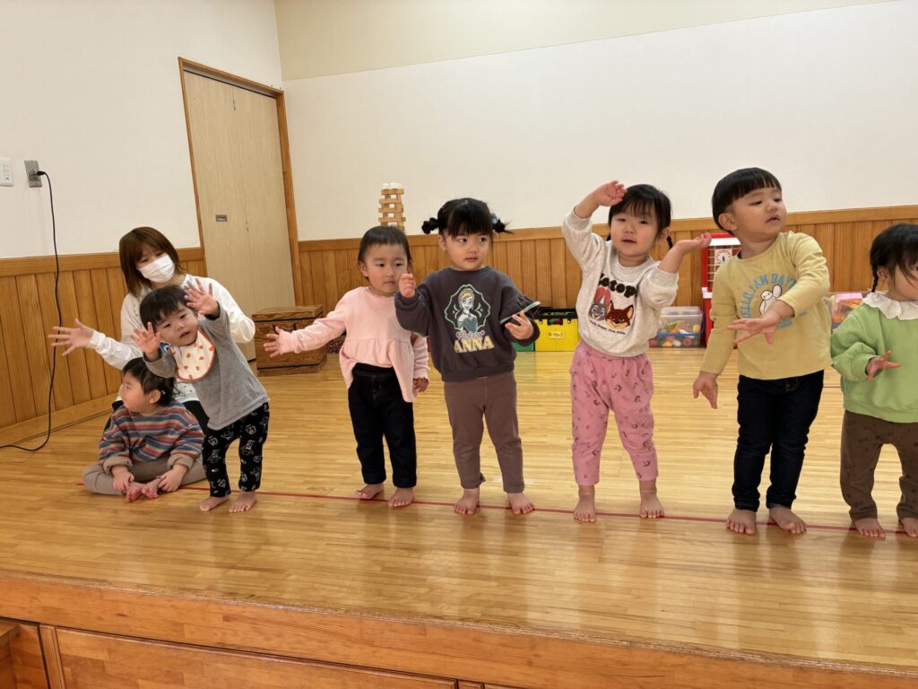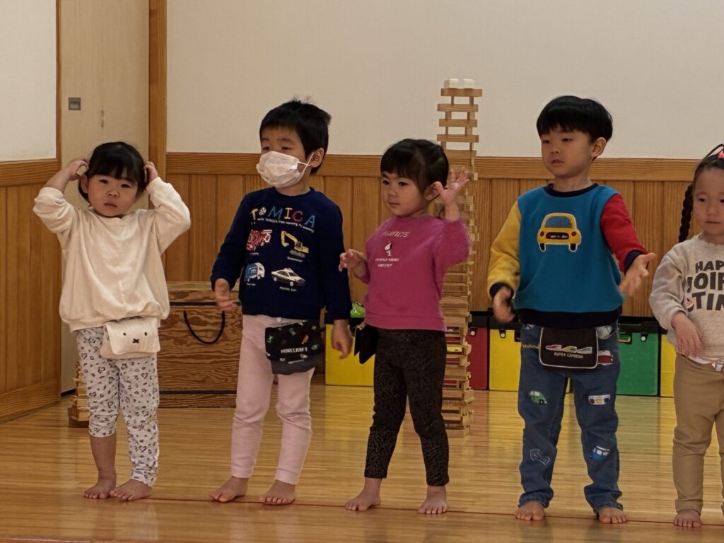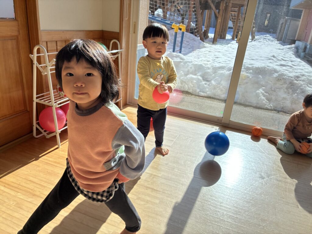ダンス練習後は、ホール遊びをしています☺️ボルダリングに挑戦する子も増え、今まで1段しか登れなかった子が、自分の力だけで2段・3段目まで登れるようになっていて成長を感じています🤗お友だちとの言葉でやり取りする姿も多く見られるようになりました☺️✨進級までも少し…チョコちゃんは、「赤ばっちさんになる⤴」と楽しみにしている姿が増えてきました✨残り1か月、みんなで楽しく過ごそうね🥰