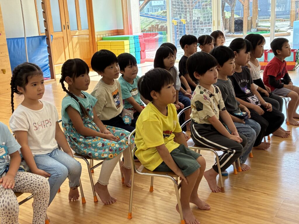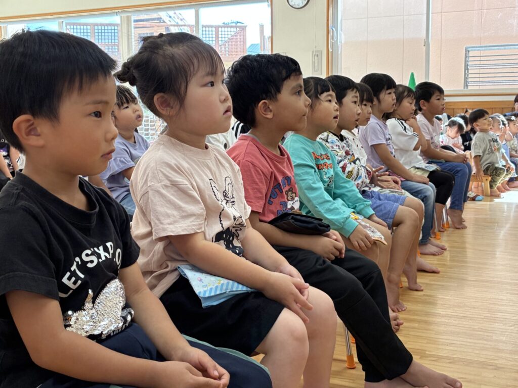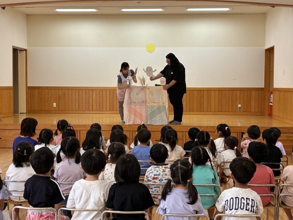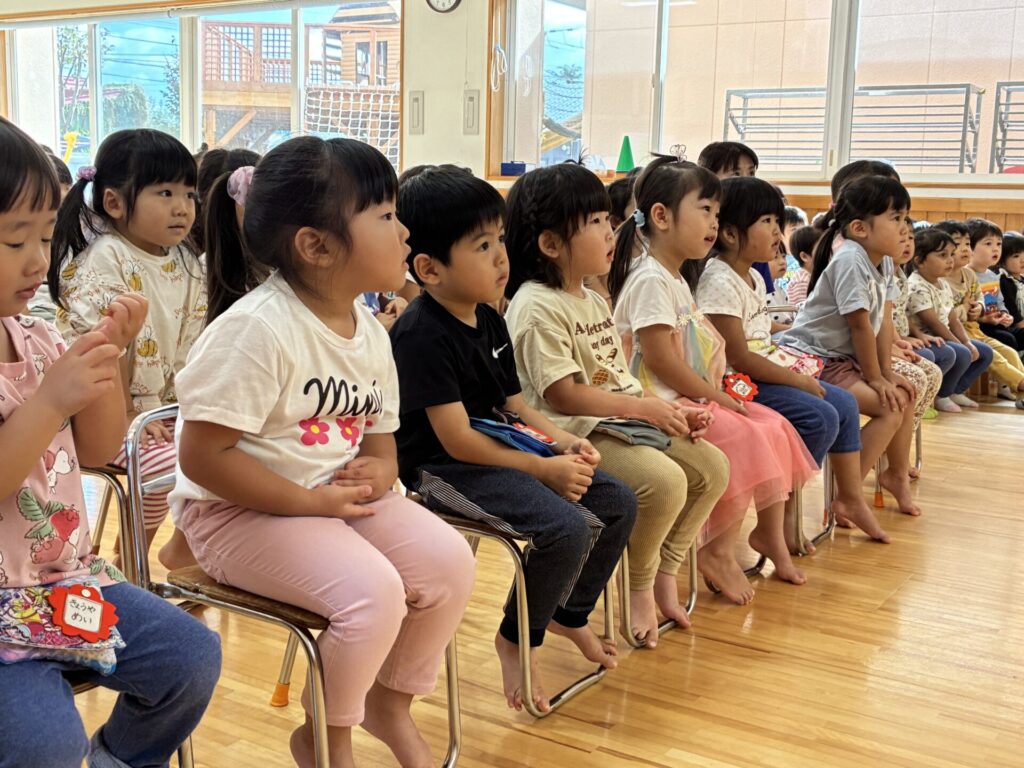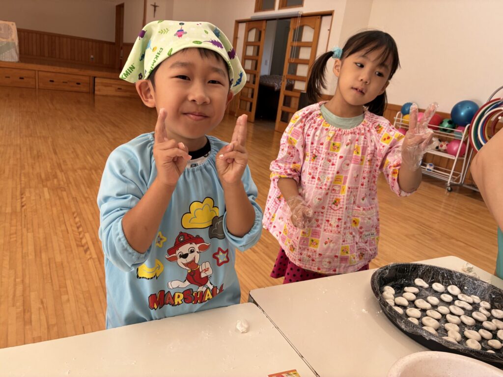 お団子づくりの後は、ホールに集まってみんなで十五夜さんのお話を聞いたり、十五夜クイズをしました🐇「十五夜さんにお供えするものは何でしょう?」「月にいるウサギはなにをしているでしょうか?」というクイズに全力で答えてくれました!その後はみんなで「つき」を歌いました🎵とっても素敵な歌声でしたよ✨