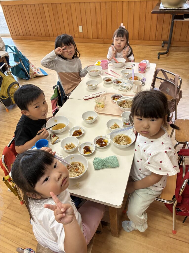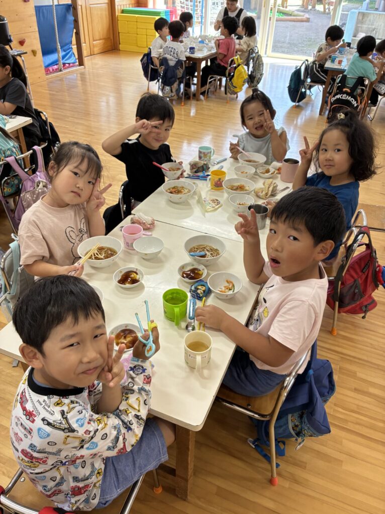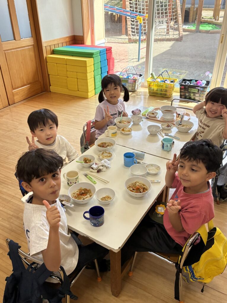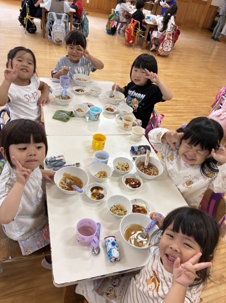 楽しみにしていた給食!みんなが心を込めて丸めてくれたお団子はみたらし団子になりました😋給食さんのカボチャのお団子を見て「お月様見たい!」「このお団子可愛くて美味しい!」と大喜びでした!お団子も沢山お替りしてくれた子ども達でしたよ😊