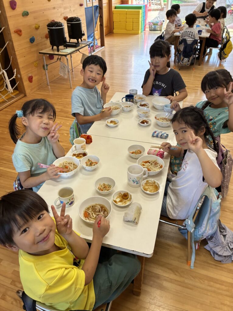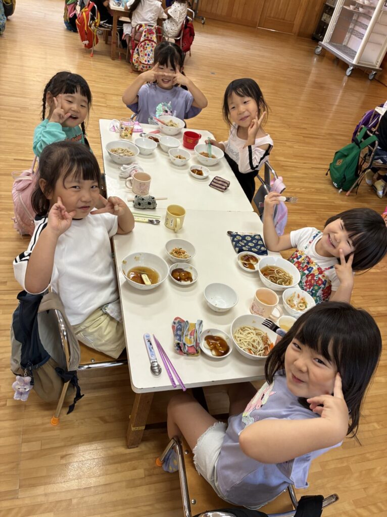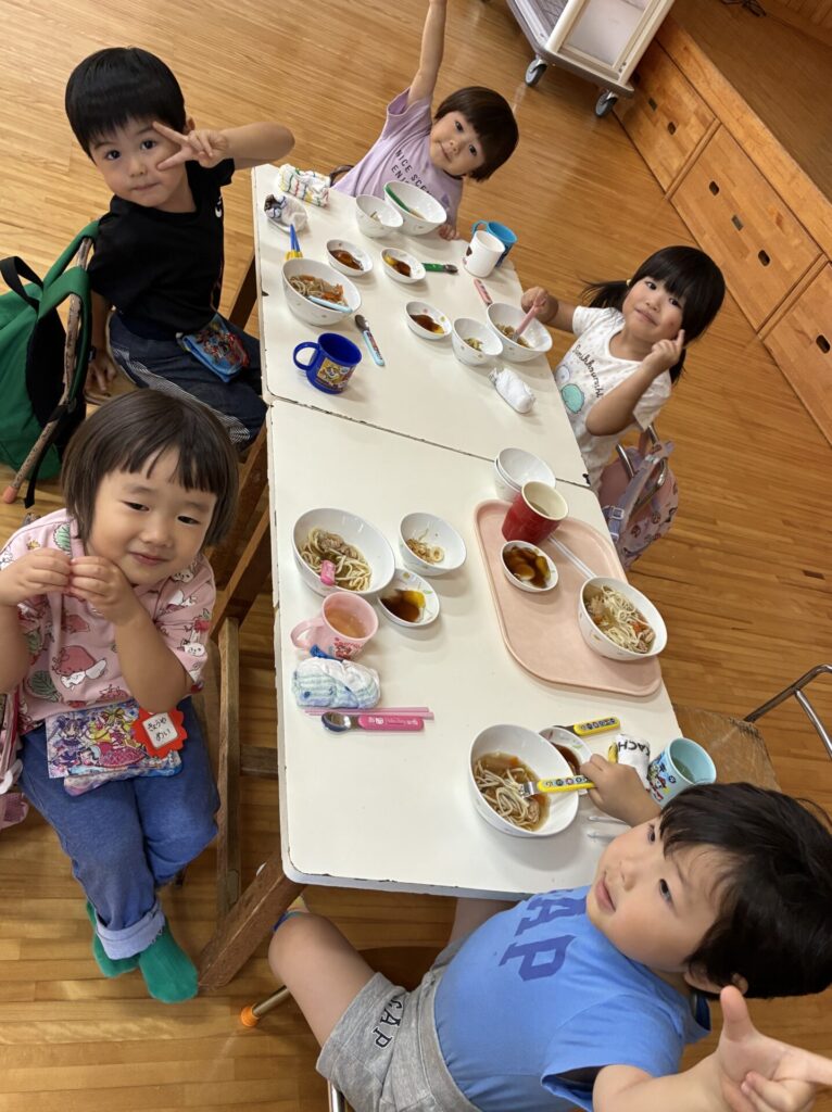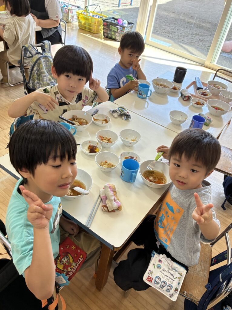 楽しみにしていた給食!みんなが心を込めて丸めてくれたお団子はみたらし団子になりました😋給食さんのカボチャのお団子を見て「お月様見たい!」「このお団子可愛くて美味しい!」と大喜びでした!お団子も沢山お替りしてくれた子ども達でしたよ😊
