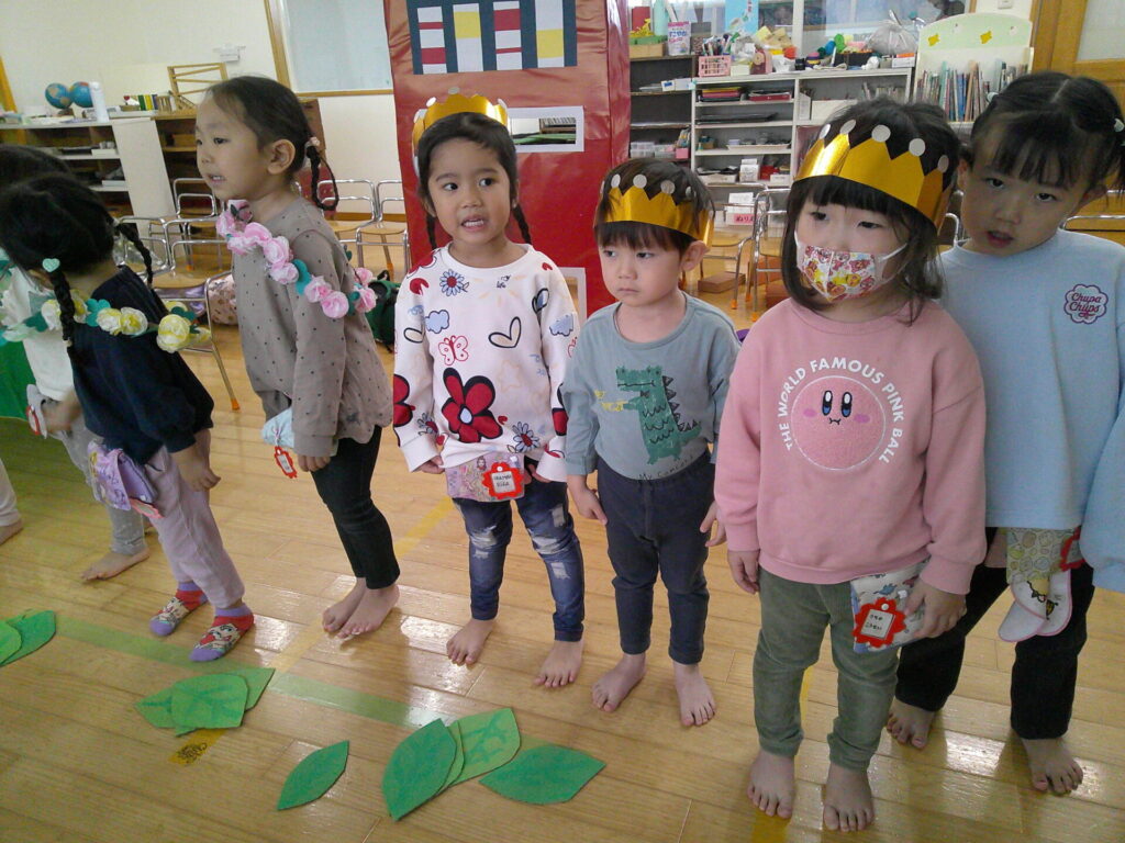 劇の役ごとに歌があるので、6曲を覚えて全員で歌っています。大きな声も出るようになったので、迫力がでてきました☺️ 日に日にセリフを覚えた子が増え、楽しんで練習しているみんなですよ!