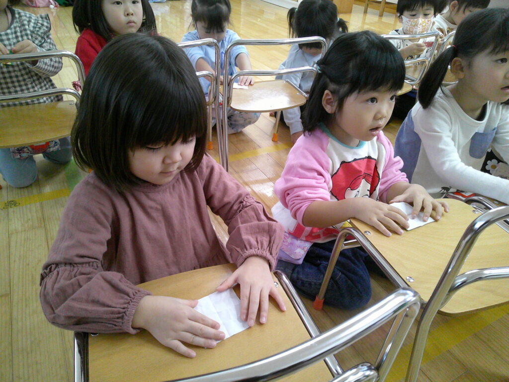端と端をしっかり合わせて折ろうと、真剣な赤・ピンクバッチさんでした🥰素敵です♥️