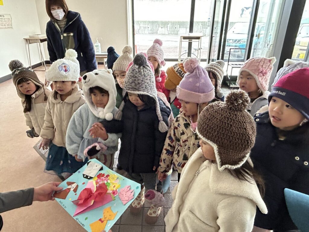 総合体育館には、歩いて行きました。「雪降ってきたね」や「寒くてびっくり~!」と話しながら、楽しそうなみんなでしたよ😊