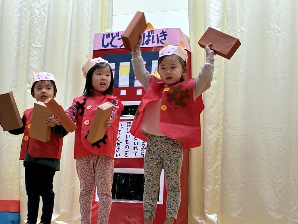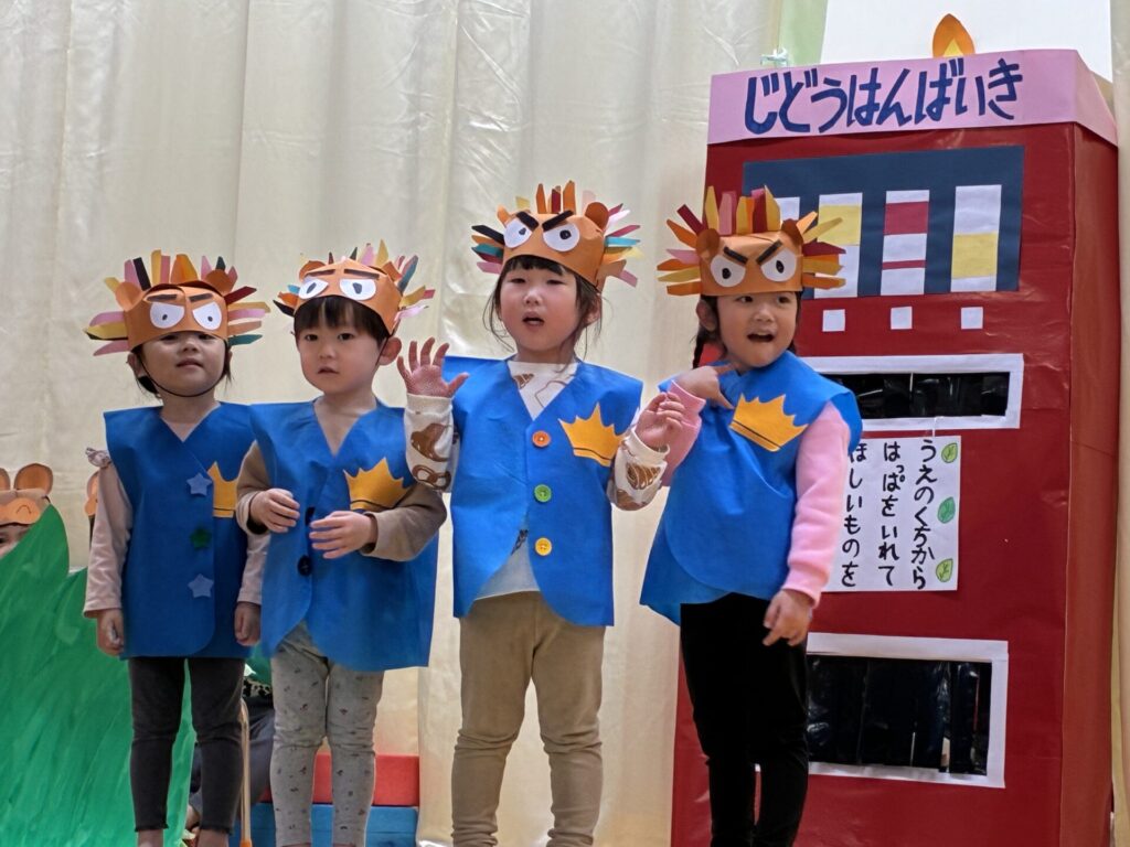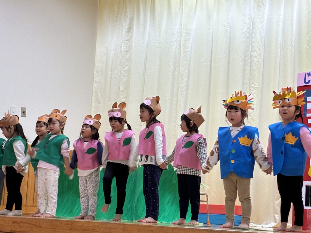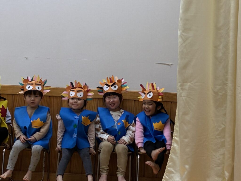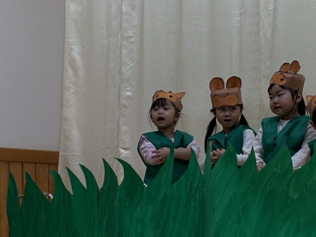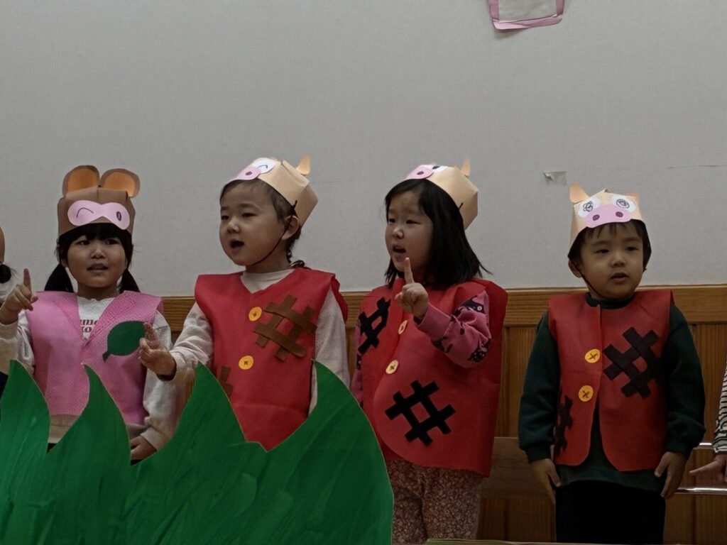 見せ合いでは、未満児さんや、他のバッチさんの劇を真剣に見て、赤・ピンクバッチさんの番になると、顔は緊張した表情でしたが、客席から「おーーー!」と歓声が上がるくらい、大きな声がでていました🥰「自分たちも頑張らなくっちゃ!」と思ったのでしょうね💪かっこよかったですよ😘
