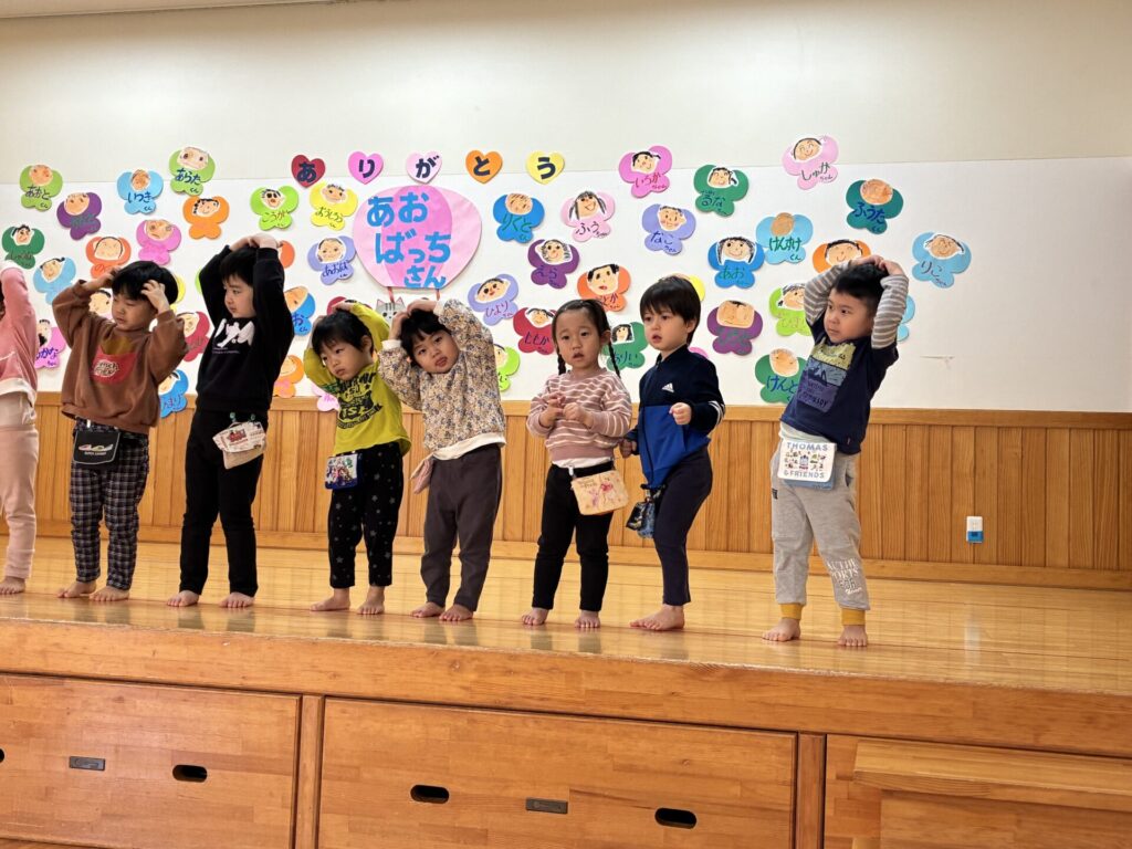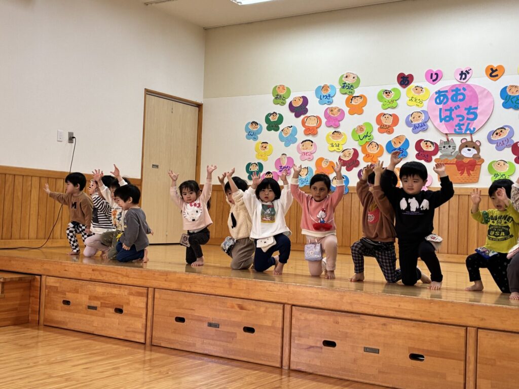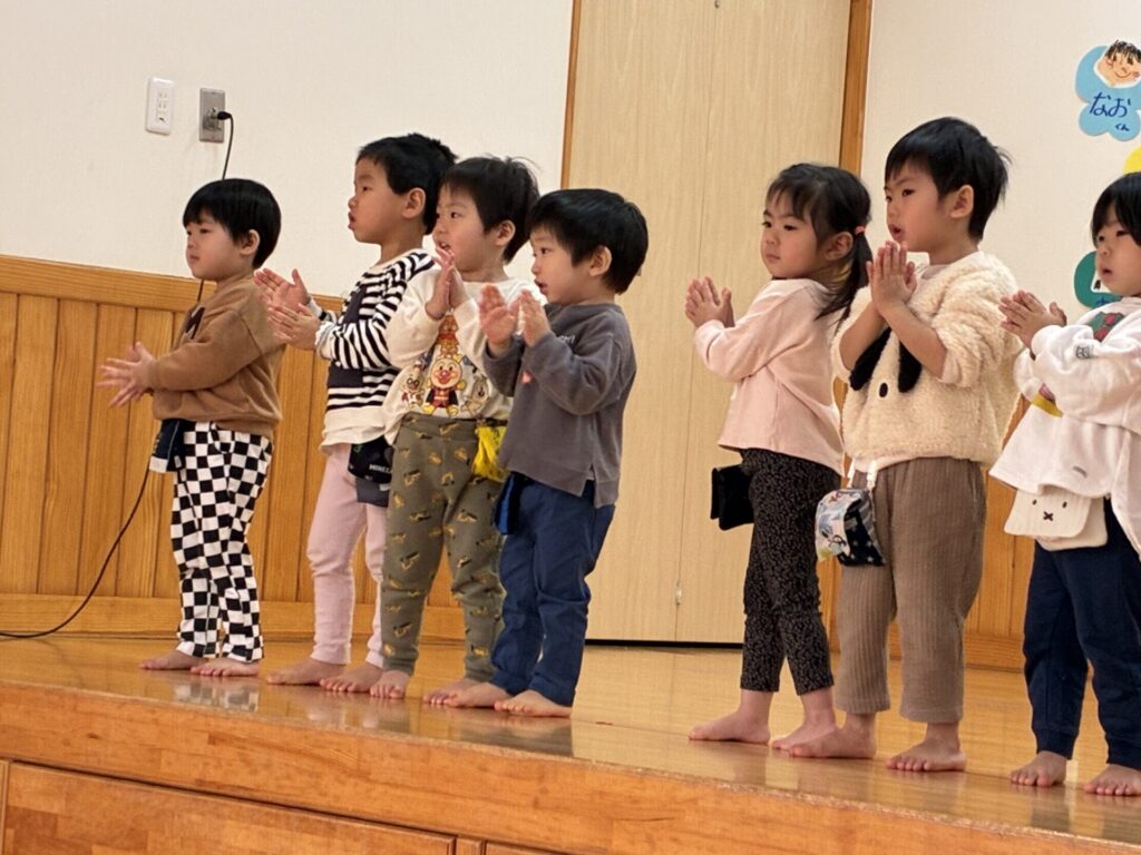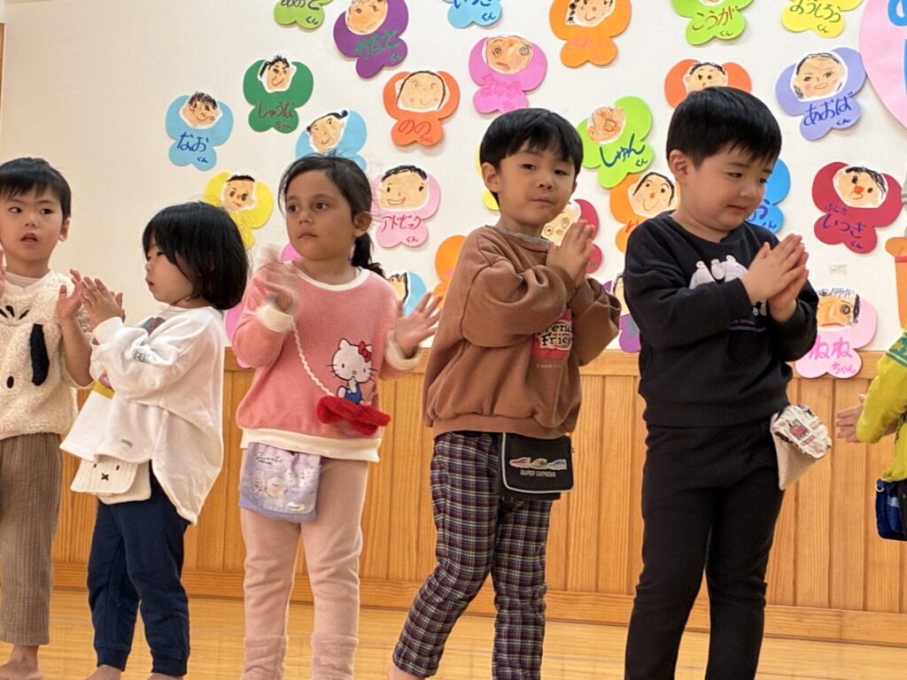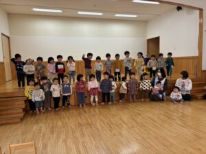 楽器演奏のお礼に未満児さんはダンスのプレゼントをしました。ひよこ・クリームちゃんは「はちゃめちゃわちゃライフ」チョコさんは「CarryingHappiness」を踊りました🤗照れながらもみんな上手に踊っていましたよ‼️