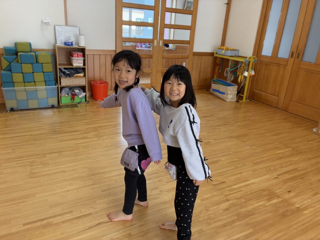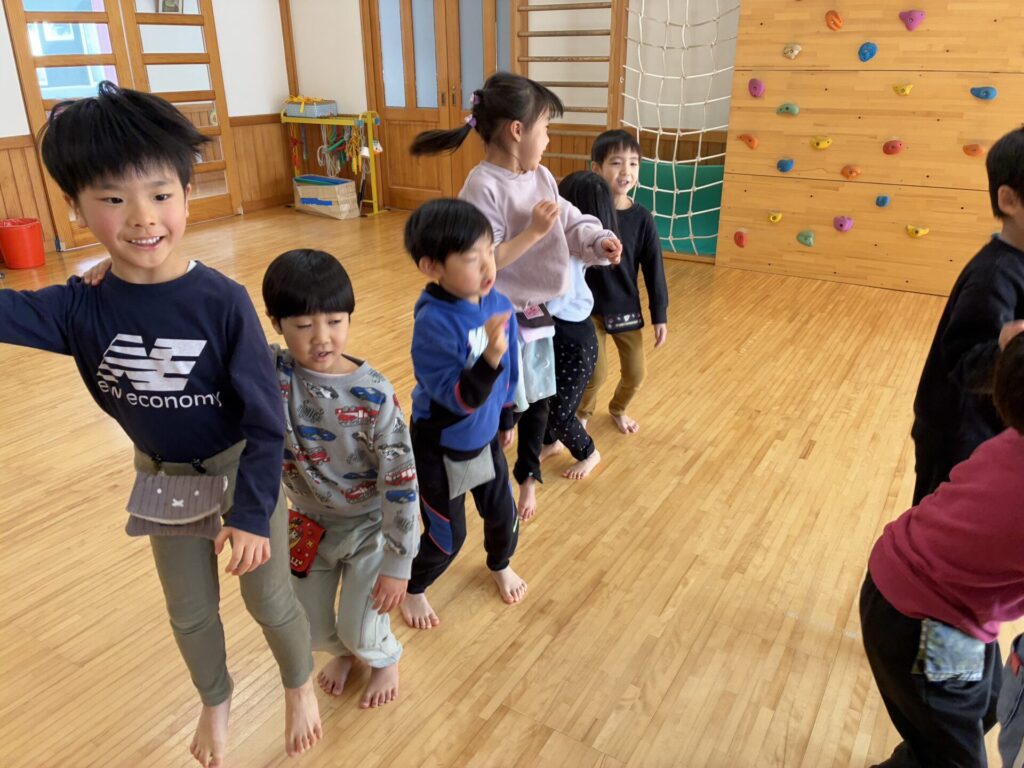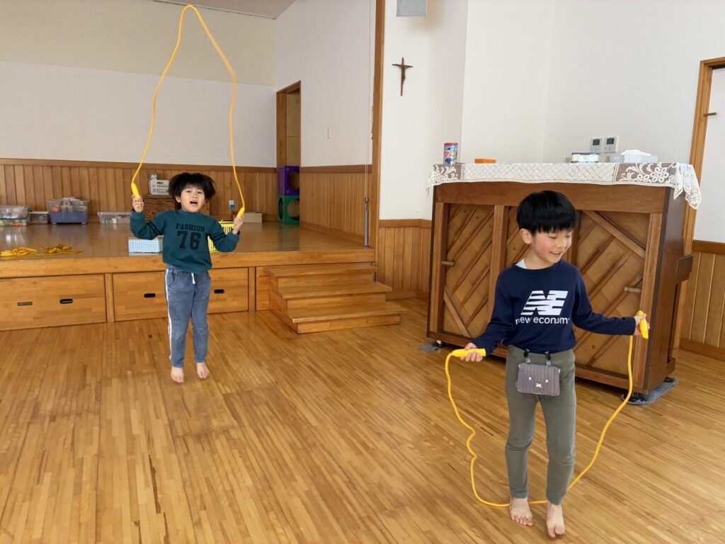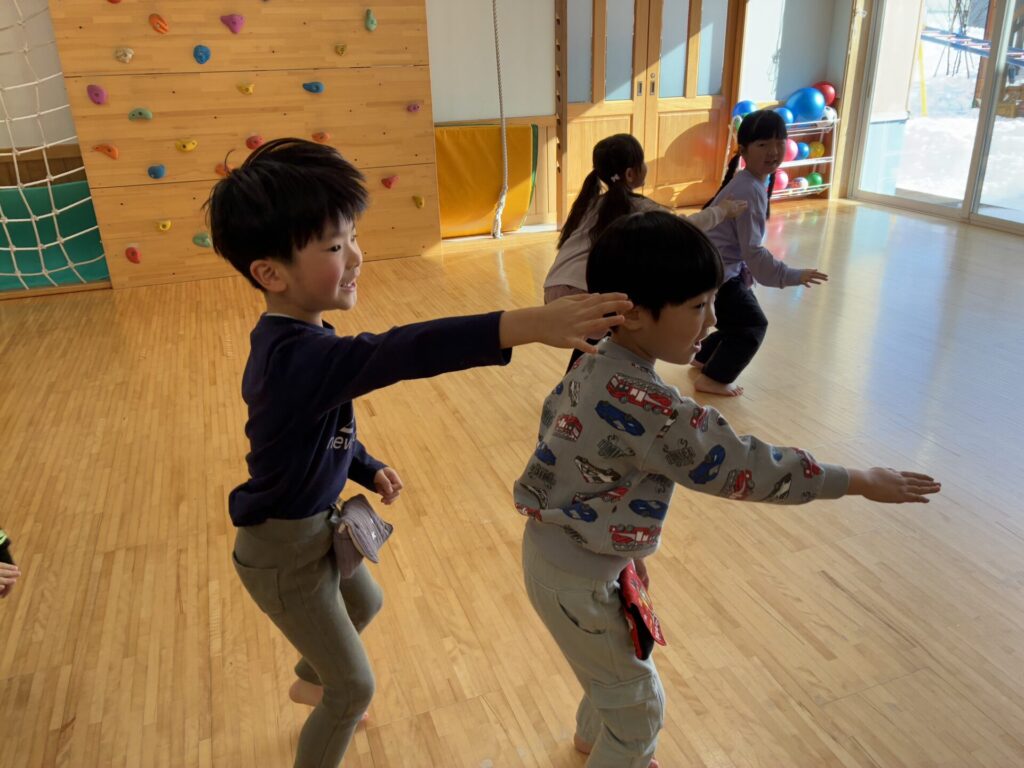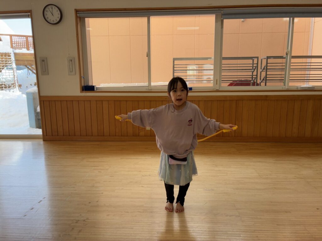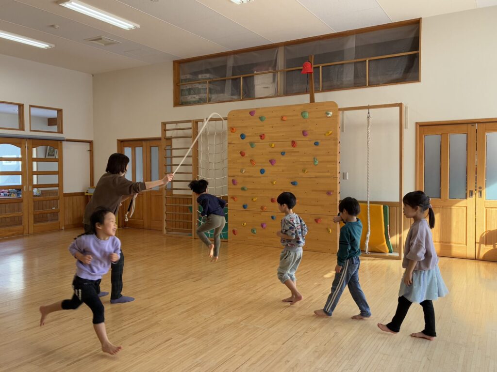 その後は、縄跳びと大縄跳びをしました。運動会で自信が付いた子ども達は、張り切って取り組んでくれましたよ!特に大繩では音楽に合わせてリズムよく跳び、「最高~~!楽しい!!」と、汗をかいて楽しんでくれていましたよ!縄跳びでは、後ろ跳びや、バッテン跳びなど新たな技にも挑戦しました!