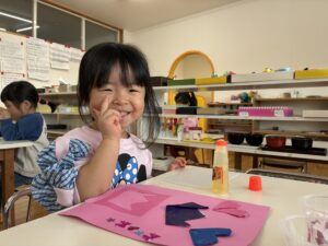 月曜日には、鬼のお面作りをしました!鬼の髪の毛は毛糸でカラフルに付け、とても可愛らしい作品となりました!来週の節分でみんなでかぶりましょうね!